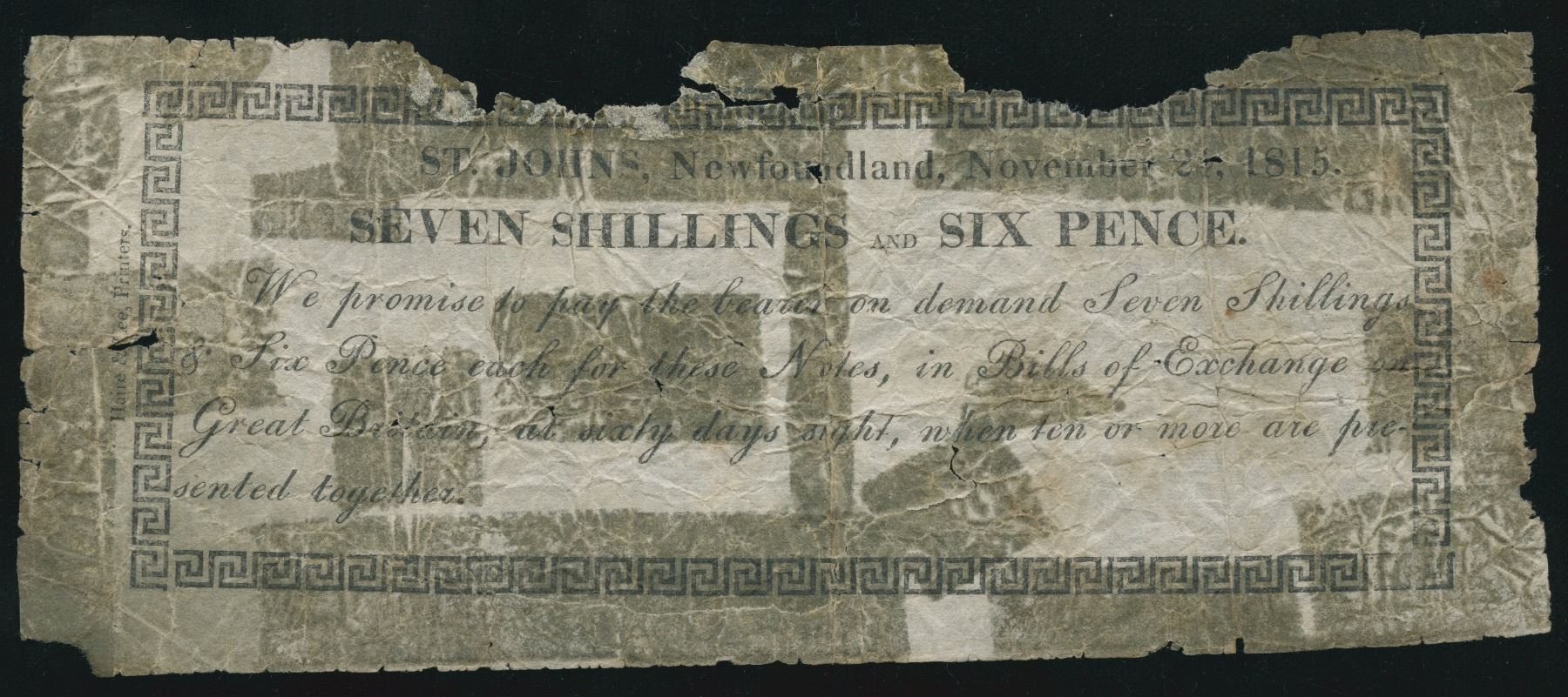 NL-25-10-02. Robert Brine was licensed in 1803 to build a store connected with his fishery and general trading business. Although in rough condition, these notes are excessively rare with just one of each denomination known to exist. Ex: Eisenhauer, Bell.