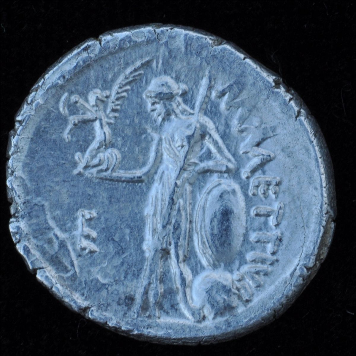 Julius Caesar (44 BC) - AR-Denarius Obv: wreathed head of Caesar CAESAR IMPER Rev: Venus stg. l., holding Victory and sceptre and resting l. arm on shield set on globe. M METTIVS. Control number E, 3.9 grams S-1419 Craw 480-17. EF. Great Julius Caesar portrait.