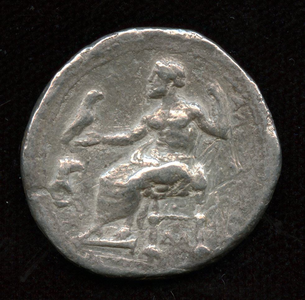 (27mm, 15.55g) Lifetime issue (struck under Menes, ca. 326/5 - 323 BC) Head of Herakles right, wearing lion skin. Rev: Zeus Aetophoros seated left, in left field, forepart of ram right, monogram below throne. Damaskos mint. Sear-6749 variety; aVF, cleanings scratches, possible horn silver.