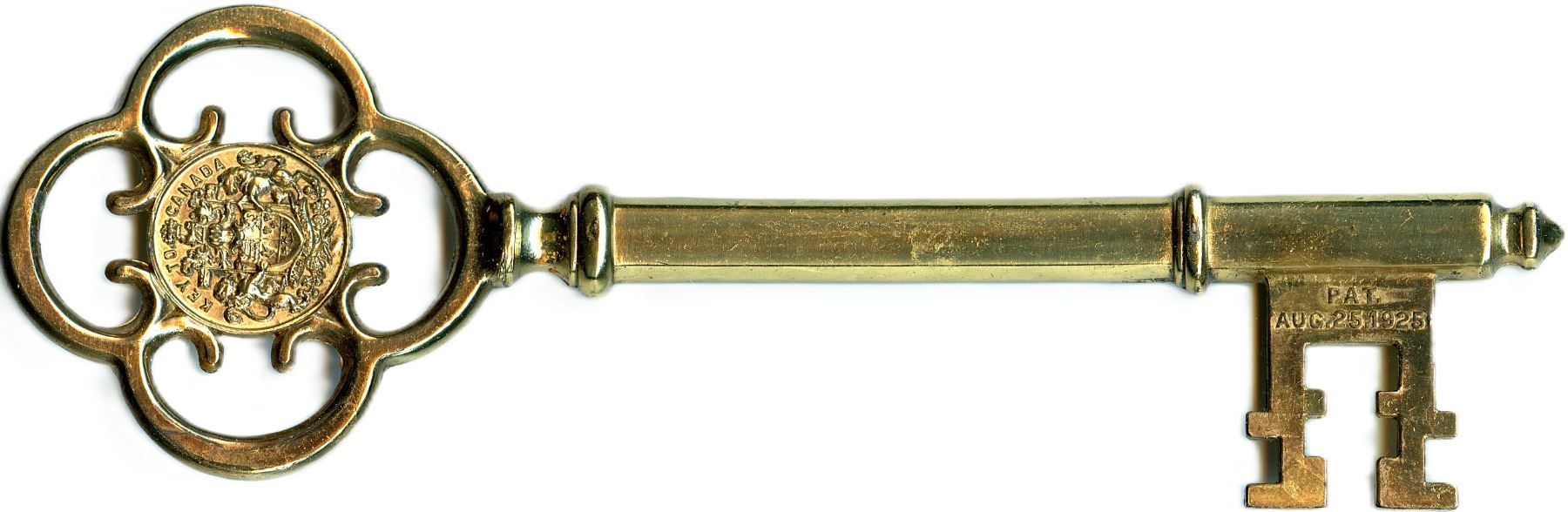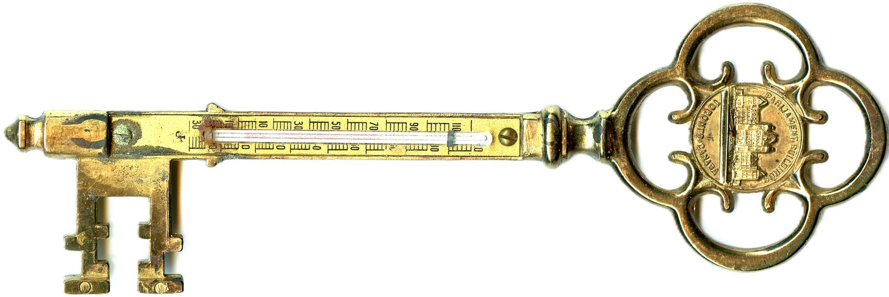 Gold Plated Key Parliament Buildings Toronto Canada Thermometer, 121x9mm, In box of Issue. 1pc. Note: this lot is part of The Harry N. James Collection.