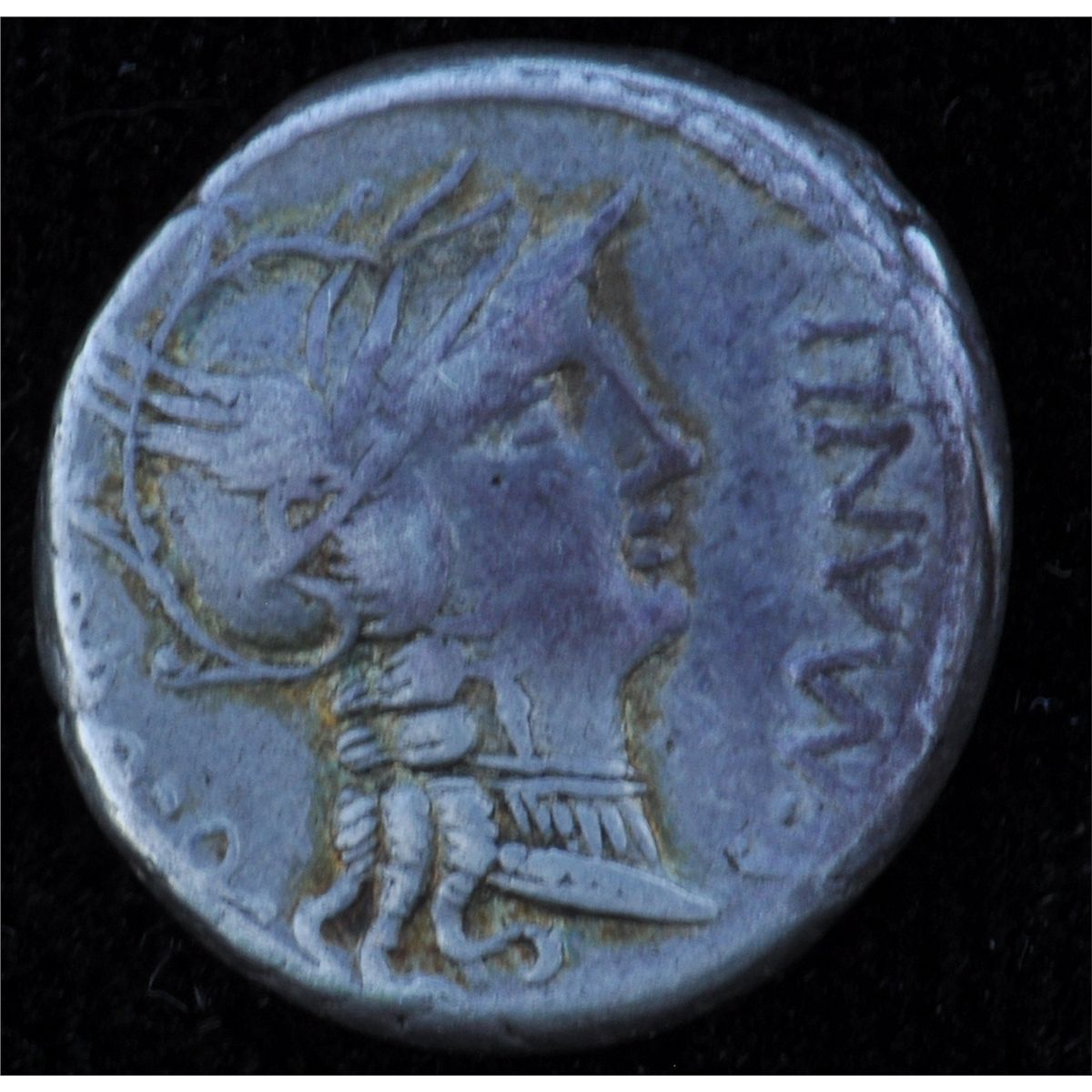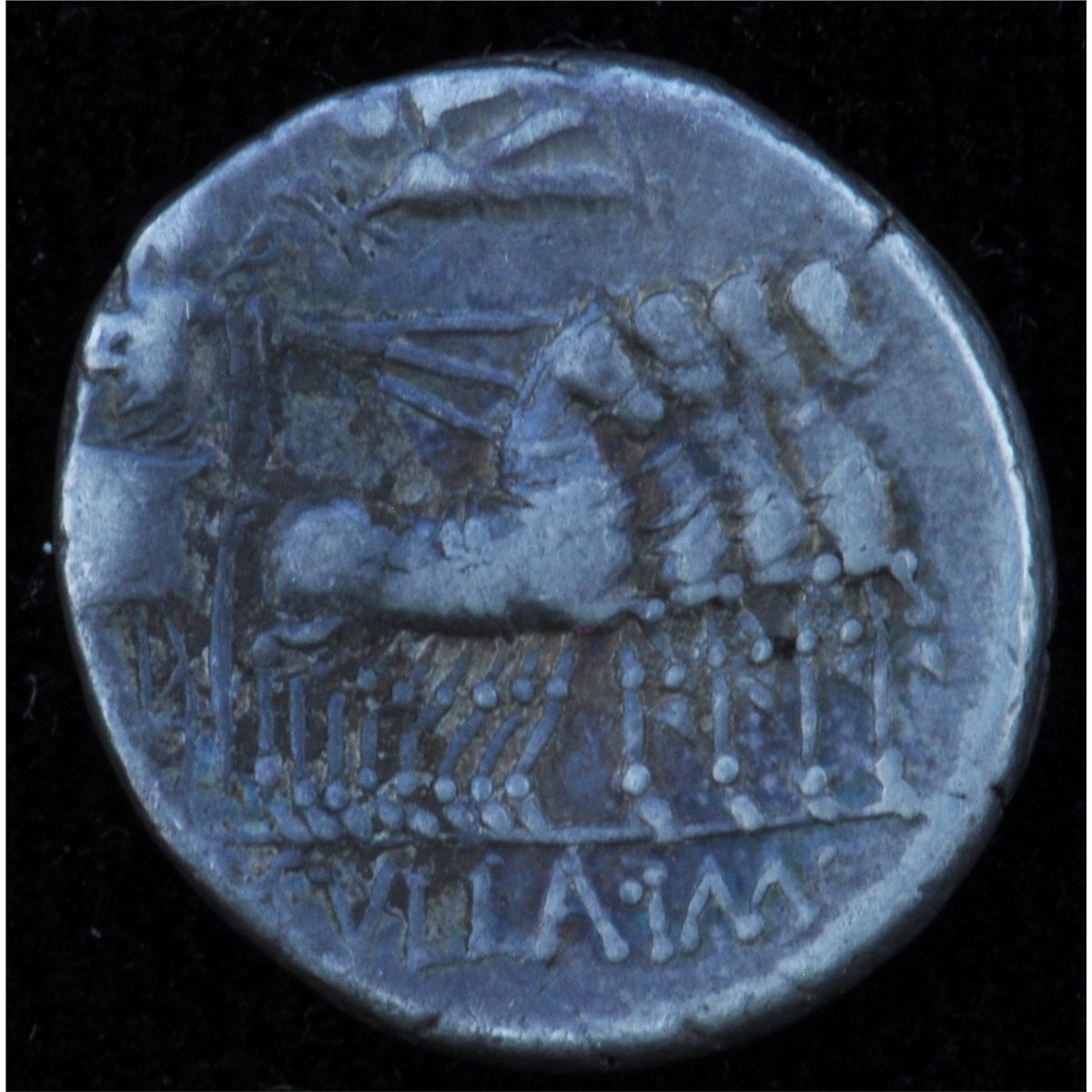 L. Cornelius Sulla and L. Manlius Torquatus (82 BC) - AR-Denarius Obv: Helmeted head of Roma r. Rev: Sulla in quadriga r, holding caduceus , crowned by Victory flying l. above L SULLA .IMP in exerge S-286 Ex:J. Hoare Auction lot 2168 June 17, 2001 Fine.