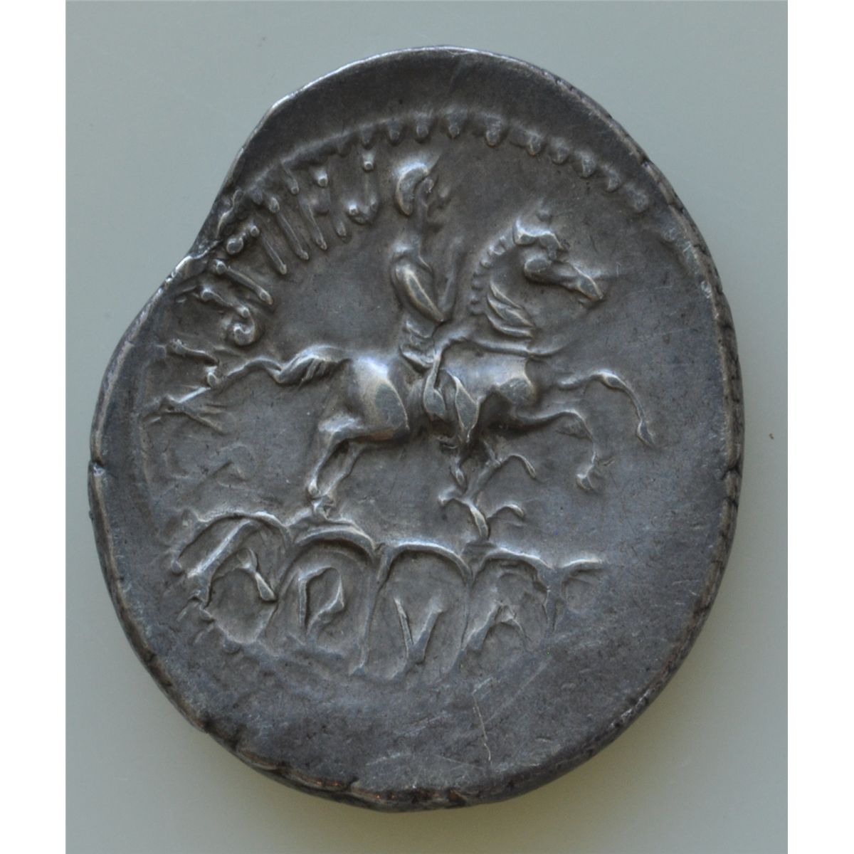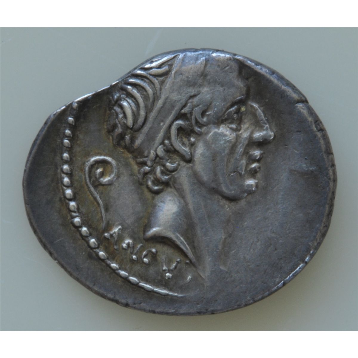 L. Marcius Philippus (56 BC) - AR-Denarius Obv: Diad. head of King Ancus Marcius r., lituus behind, ANCUS below. Rev: Aquaduct represented as an arcade of five arches surmounted by an equestrian statue r., PHILIPPVS on l., lettering in arches. S-382 Craw 425-1. Slightly irregular flan. Toned Good VF.