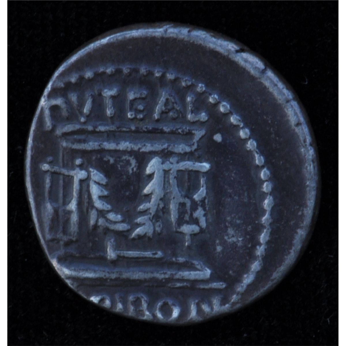 L.Scribonius Libo (62 B) - AR-Denarius Obv: Diad. head of Bonus Eventus r., BON EVENT before LIBO behind. Rev: Garlanded altar. PVTEAL above, SCRIBON below. Reverse is 20% off centre. 3.7 grams S-367 Craw 416-1A Toned VF.