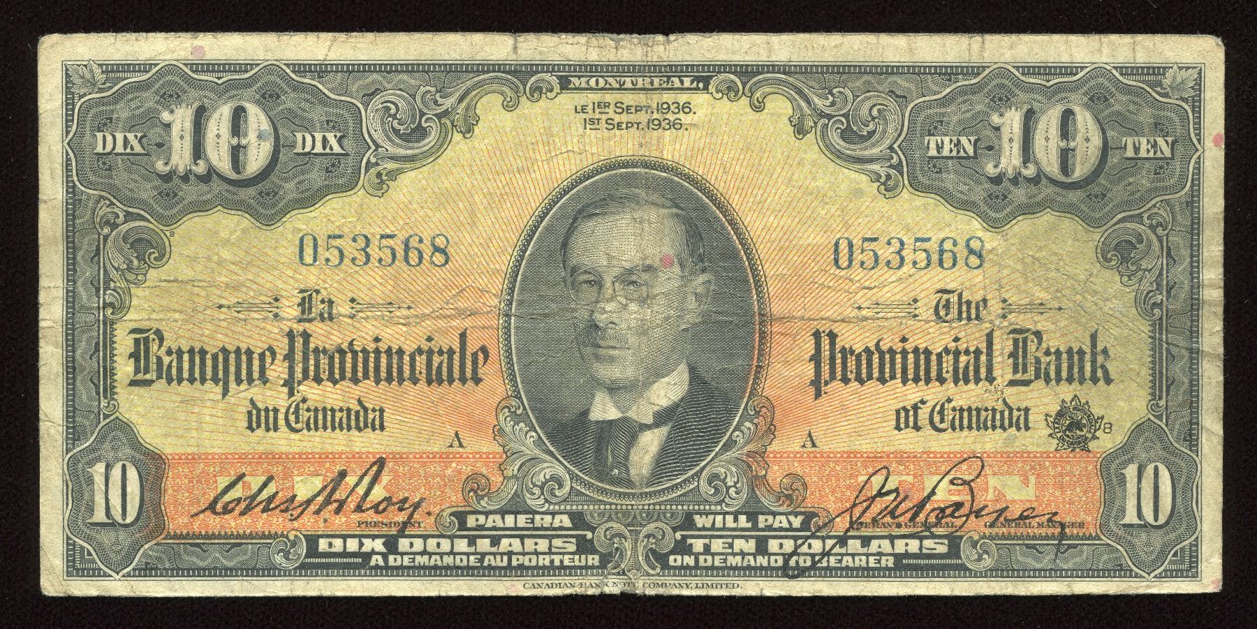 CH 615-18-06; Orange Back, 053568/A, Fine, La Banque Provinciale Du Canada