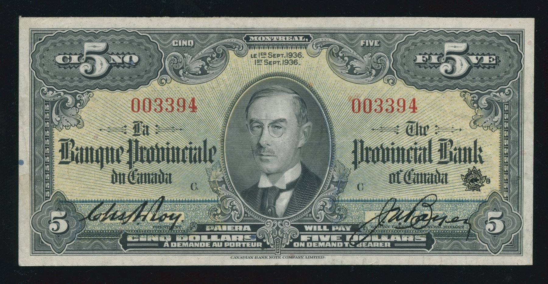 CH-615-18-02. Blue back. The Provincial Bank of Canada. S/N: 003394/C. Extra Fine, exceptional centering.