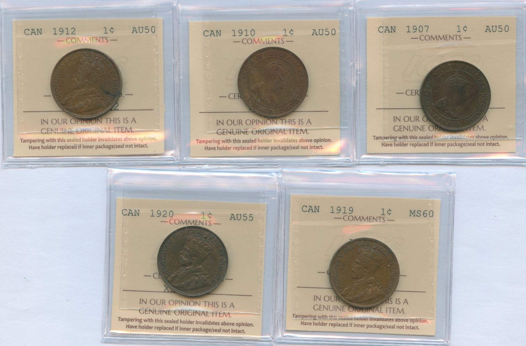 Includes: 1907 AU50, 1910 AU50, 1912 AU50, 1919 MS60, 1920 AU55. 5 pcs.