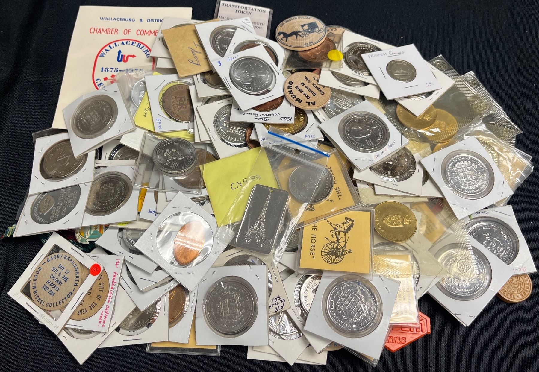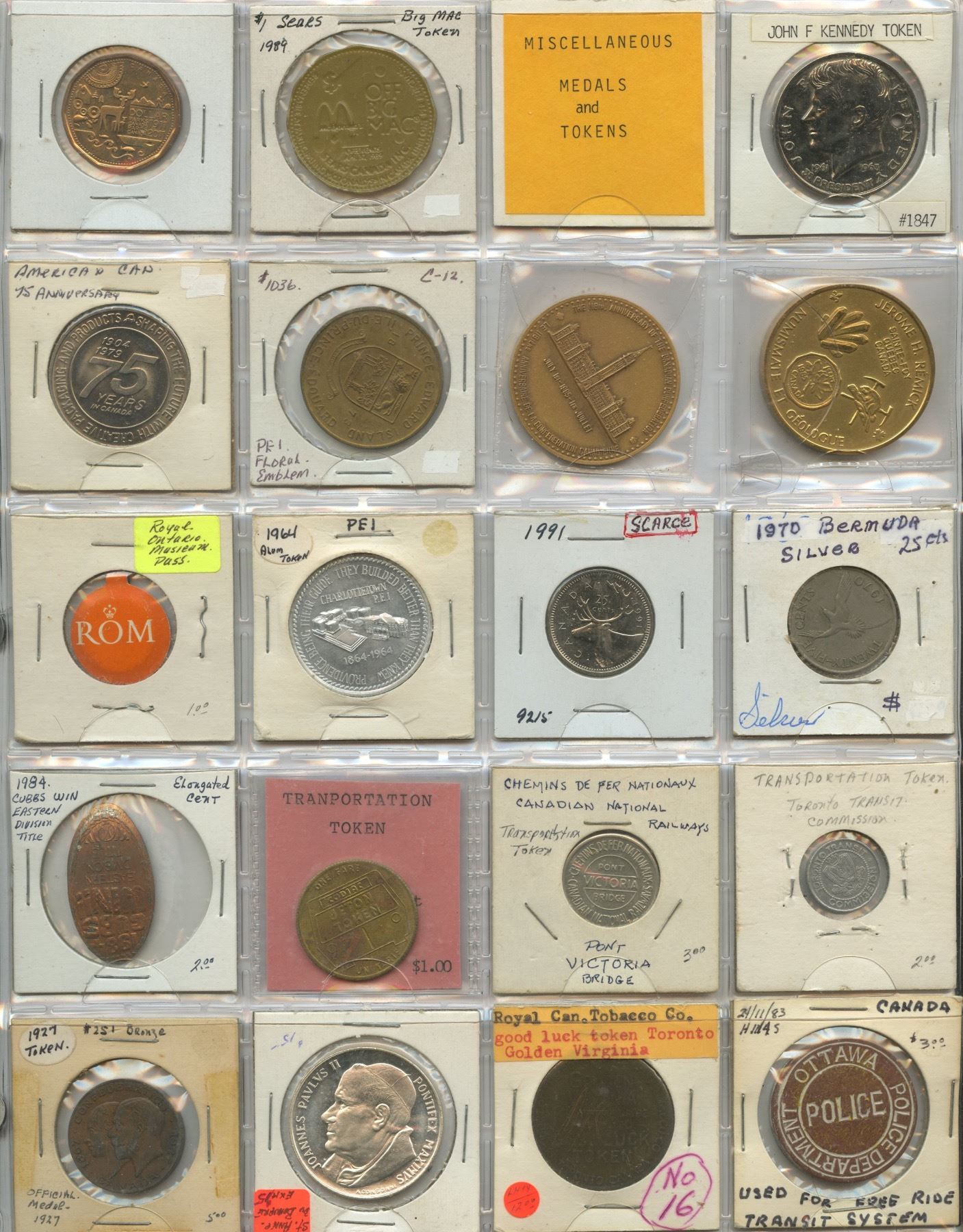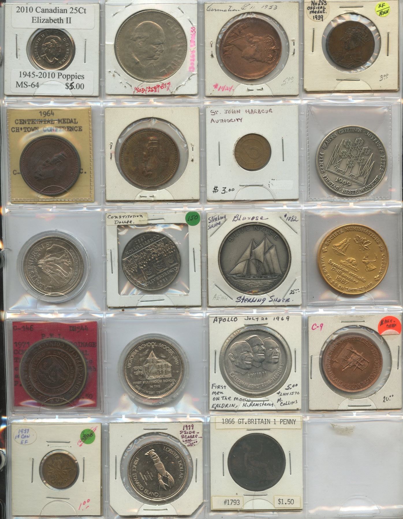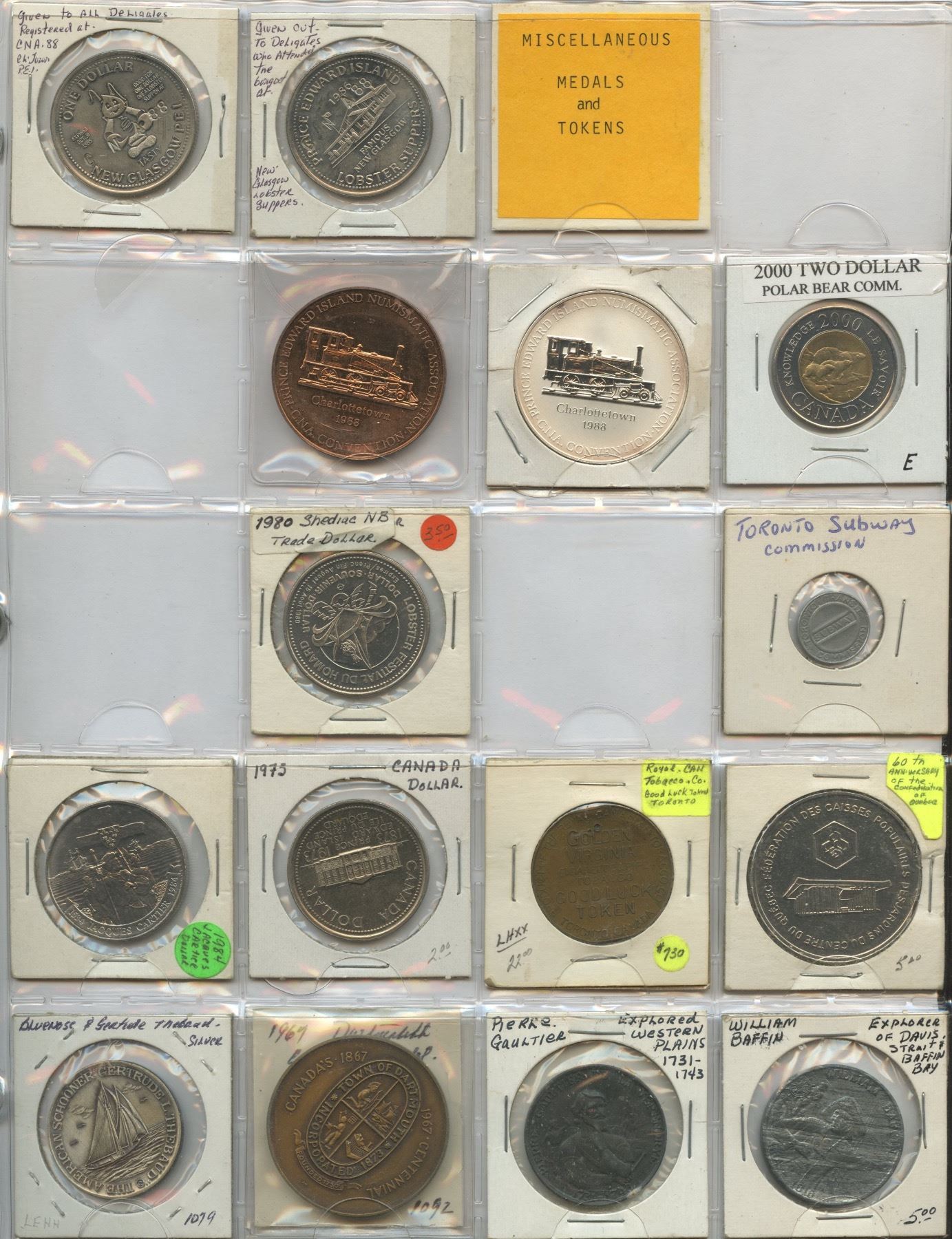 Many PEI pieces are included in this trade dollar, wooden nickel, dog tag, token, medal and coins, even a PEI sand dollar! Part of the Dickieson Collection. 256 Pcs.