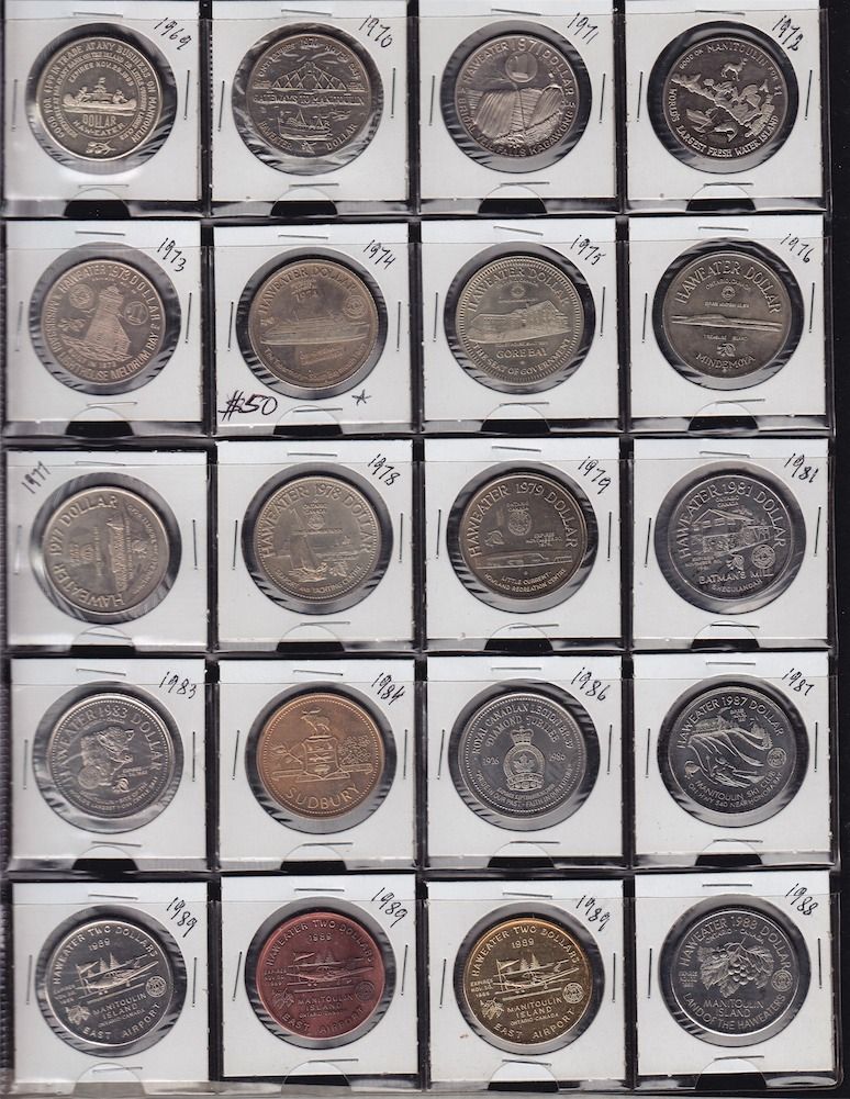 Large lot of 69 Trade Dollars - Includes many from Manitoulin and Haweater. 69 Pcs.