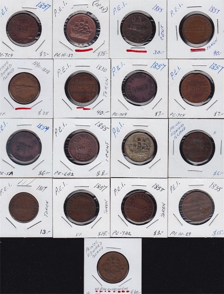 Large lot of Prince Edward Island Tokens - We recommend viewing this interesting lot, no return. 57 Pcs.