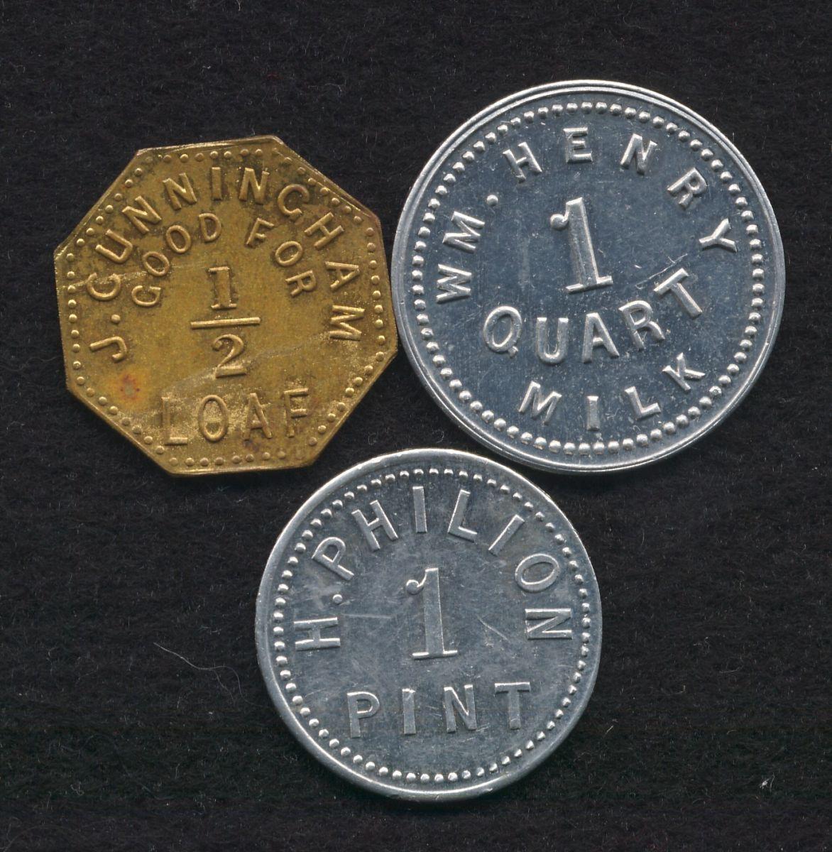J. Cunningham, brass, AU, H. Philion, AL, AU, Wm. Henry, AL, UNC (3 pcs)