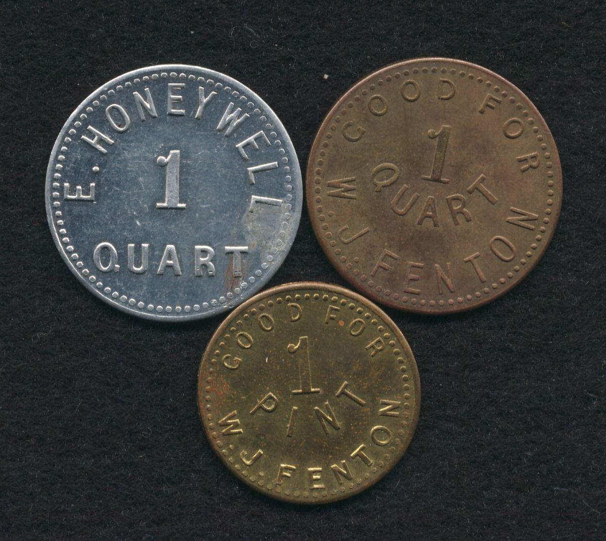 W.J. Fenton, brass, EF, W.J. Fenton, brass, AU, E. Honeywell, AL, AU, (3 pcs)