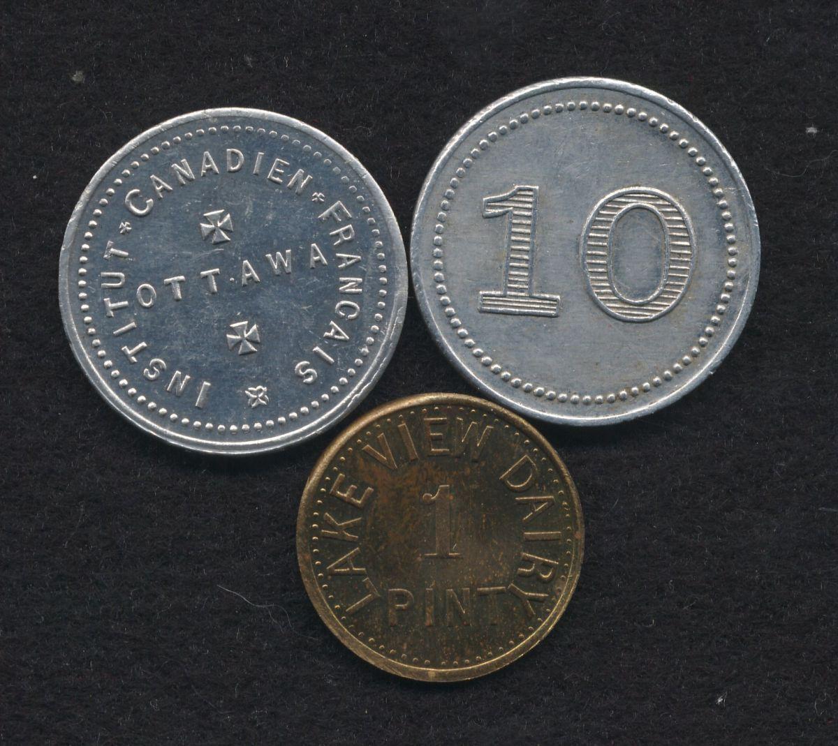 Institute Canadien, AL, AU, Institute Canadien, AL, UNC, Lake View Dairy, brass, AU (3 pcs)