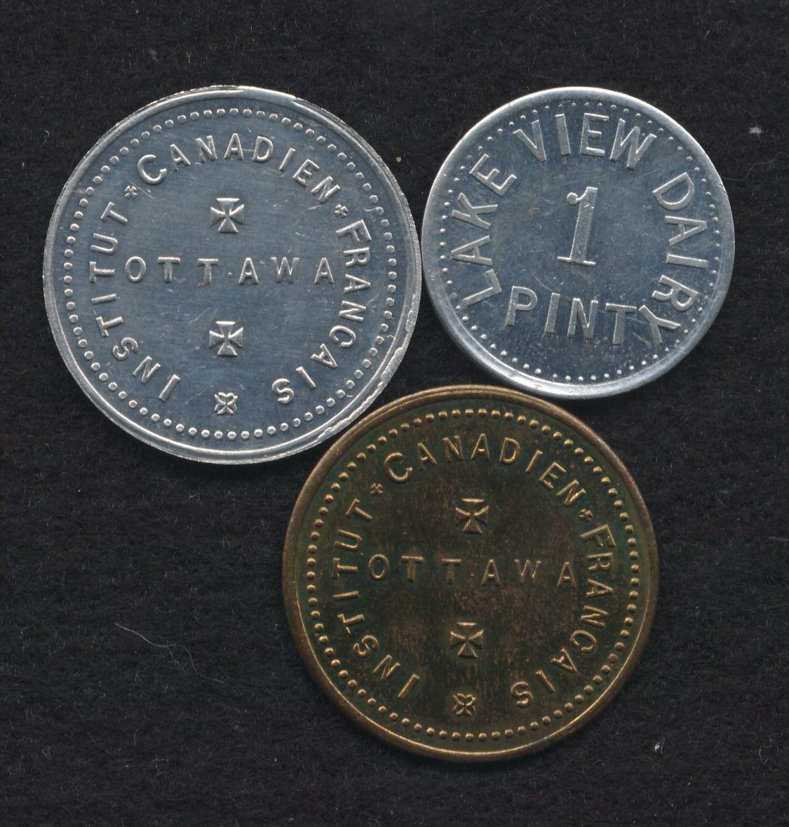 Institute Canadien, brass, UNC, Institute Canadien, AL, UNC, Lake View Dairy, AL, UNC ( 3 pcs)