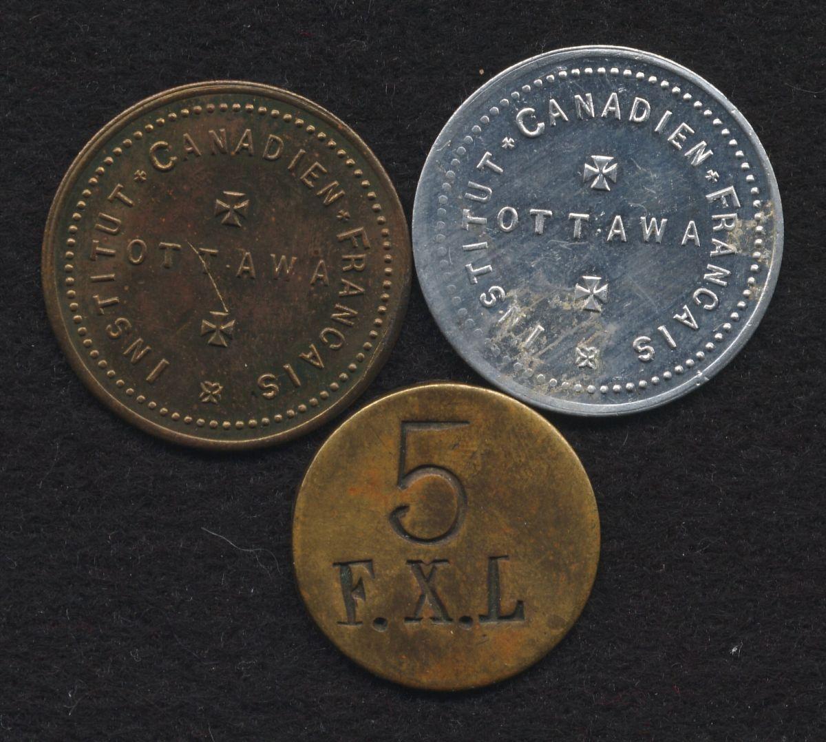 Institute Canadien, AL, UNC, Institute Canadien, brass, AU, F.X.L., brass, VF (3 pcs)