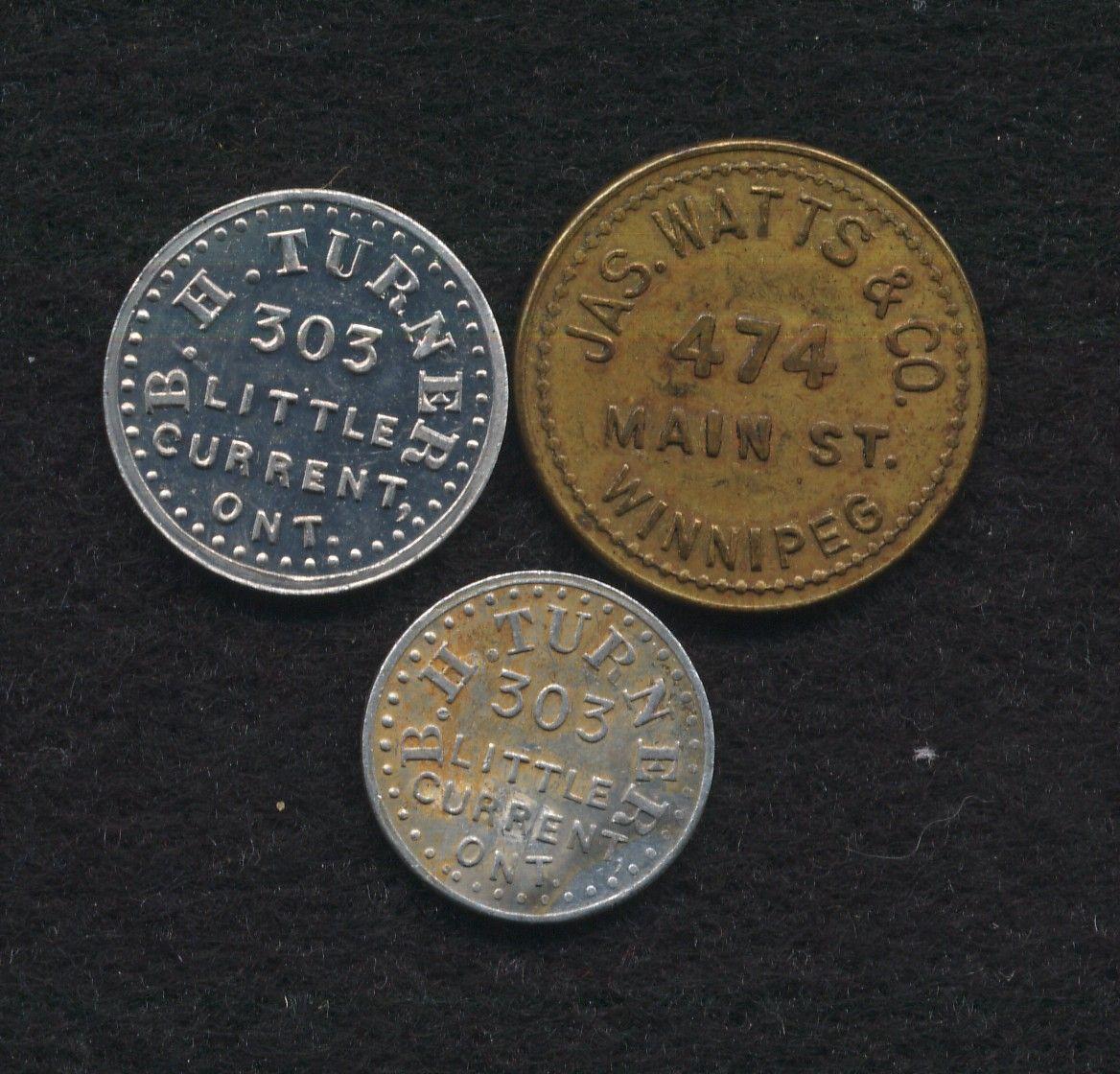 B.H. Turner, AL, UNC, B.H. Turner, AL, VF, Jas. Watts, brass, EF ( 3pcs)