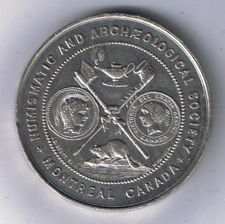 Ler 1610, BR 171. WM, Numismatic and Archeological Society Montreal Canada Instituted 1862 Incorporated 1870. 42mm, 21.91g. Rarity 4.