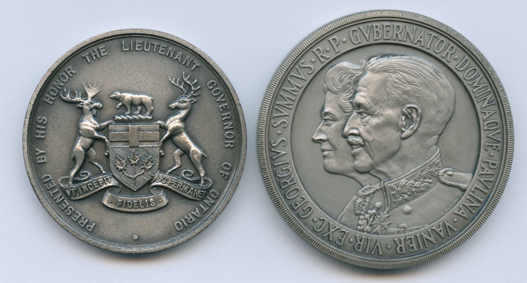 The Lieutenant Governor medal is presented to J.H. Mason/Head Prefect/1960-61. Governor General medal CL 120, silver, 1967, in case. Both are AU/Unc and sterling silver. 2 pcs.