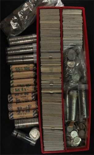 Contains many silver coins, worthy of a look, a full red box full of stuff!