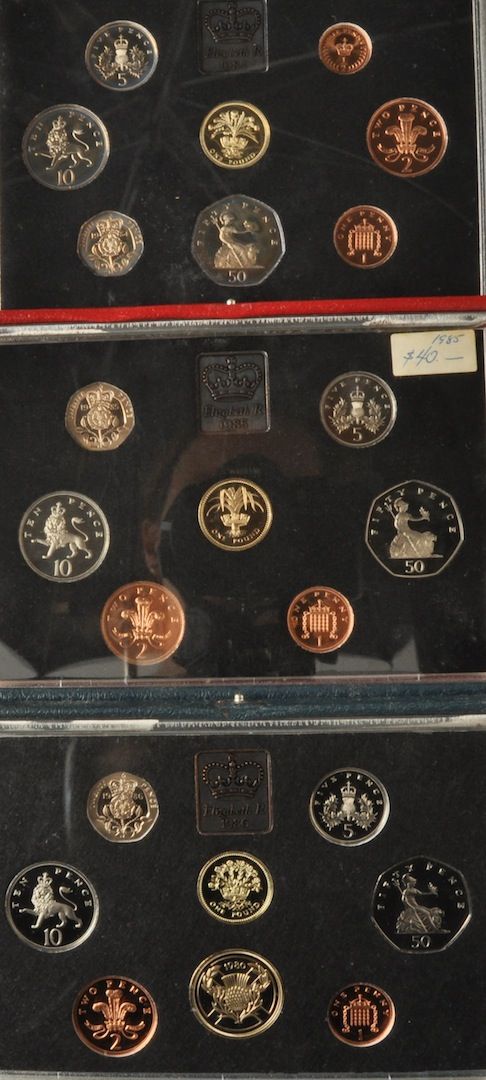 Lot of 10 British Proof Sets - Dates include: 1984-1993. 10 Sets.