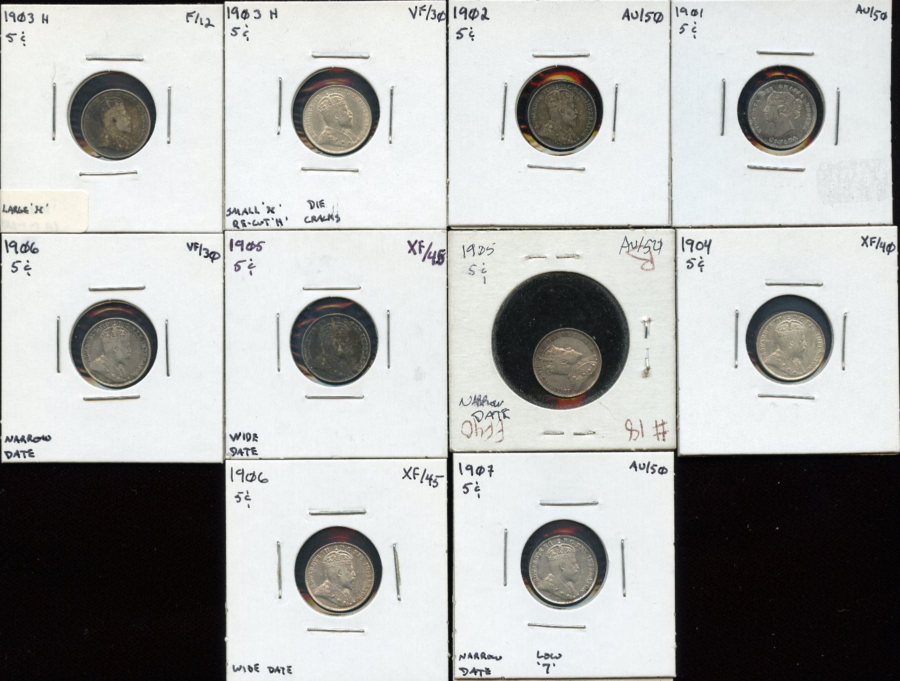 Includes: 1901 AU. 1902 AU. 1903H VF+ small, recut H. 1903H Fine, large H. 1904 EF. 1905 EF, narrow date. 1905 wide date, EF+. 1906 VF+, narrow date. 1906 EF+ wide date. 1907 AU, narrow date, low 7. 10 Pcs.