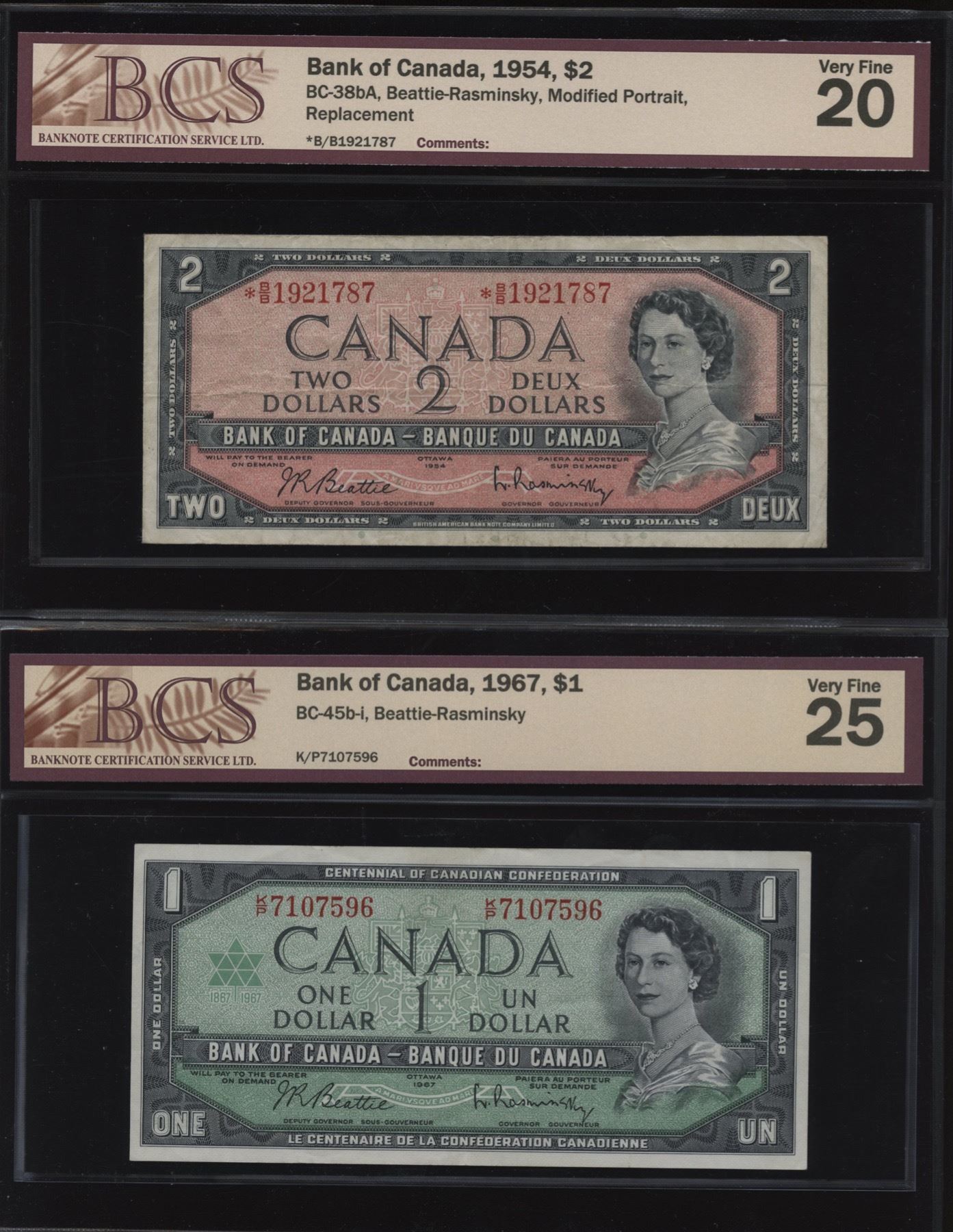 Great chance to improve your graded banknote collection in one swipe! Includes: BC-38bA. BCS VF20. S/N: *B/B1921787. BC-45b-i. BCS VF25. S/N: K/P7107596. BC-46a-i. BCS Unc. 60, original. S/N: AAJ5389362. BC-46a-i. BCS Unc. 60, original. S/N: AAD3008455. 2 x BC-46a-i. BCS Choice Unc. 62, original. S/N: AFG0647219-7220. BC-55b-i. BCS AU55, original. S/N: EBR7514543. BC-56e. BCS EF45, original. S/N: GPZ2730294. BC-62a-i. BCS Choice Unc. 62, original. S/N: HNJ3163185. BC-67a. BCS Choice Unc. 63, original. S/N: APL4384972. BC-69a. BCS Unc. 60, original. S/N: HBG0845472. 11 Pcs.