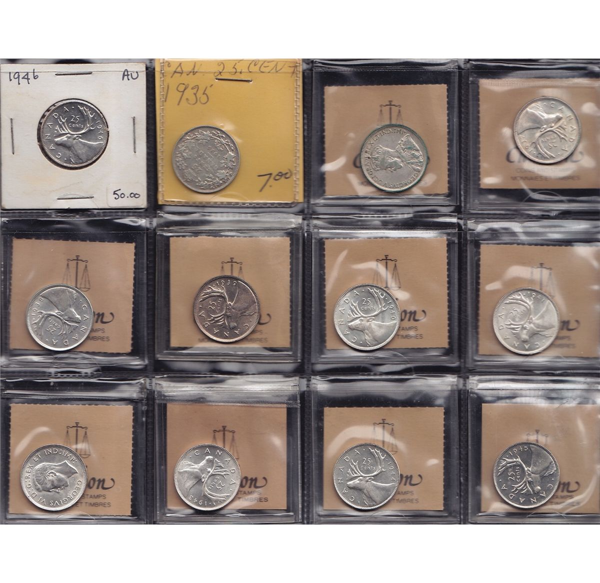 Lot of 12 Twenty Five Cent - Dates include: 1935-1946. Fine to Mint State. 12 Pcs.