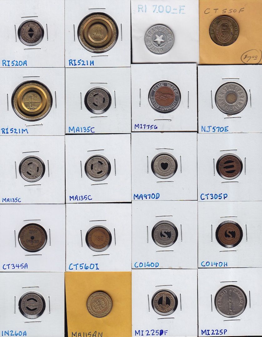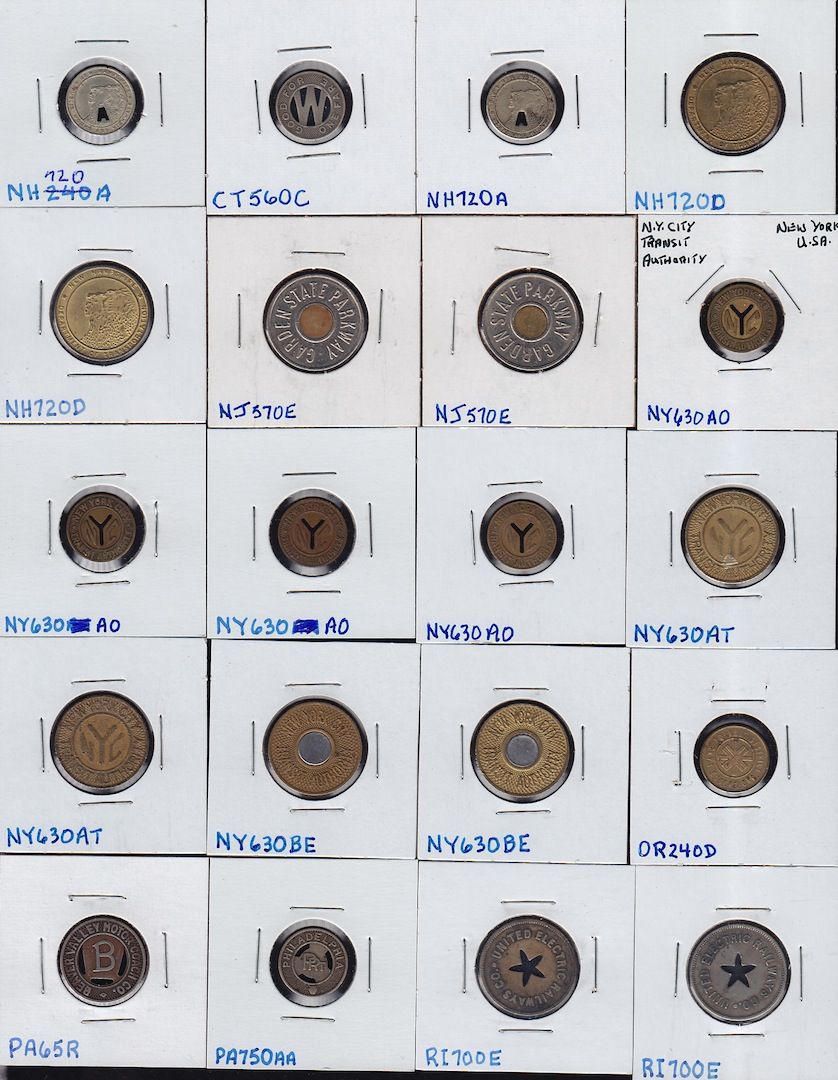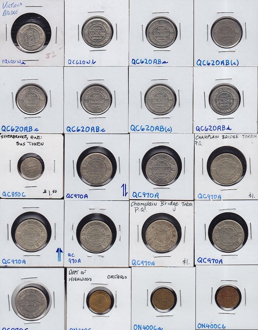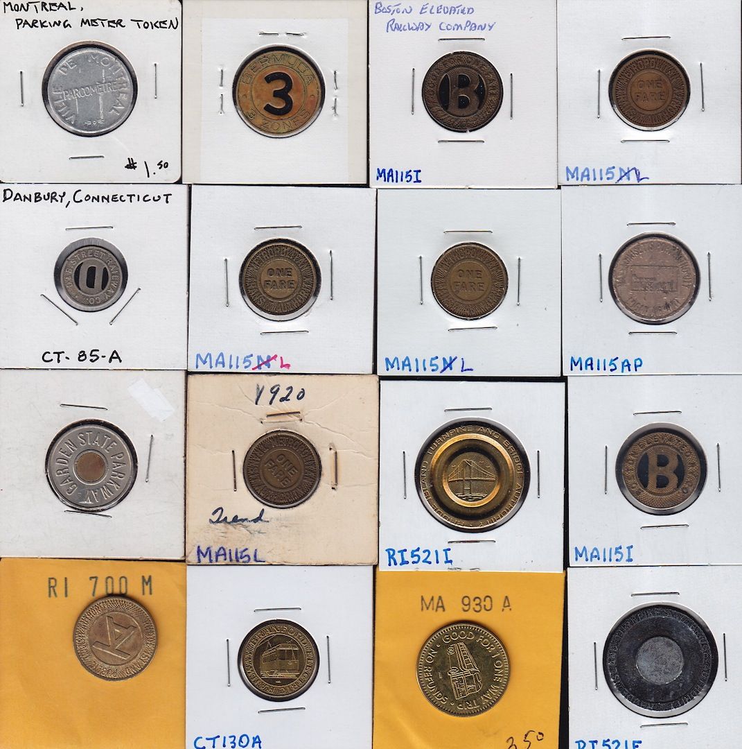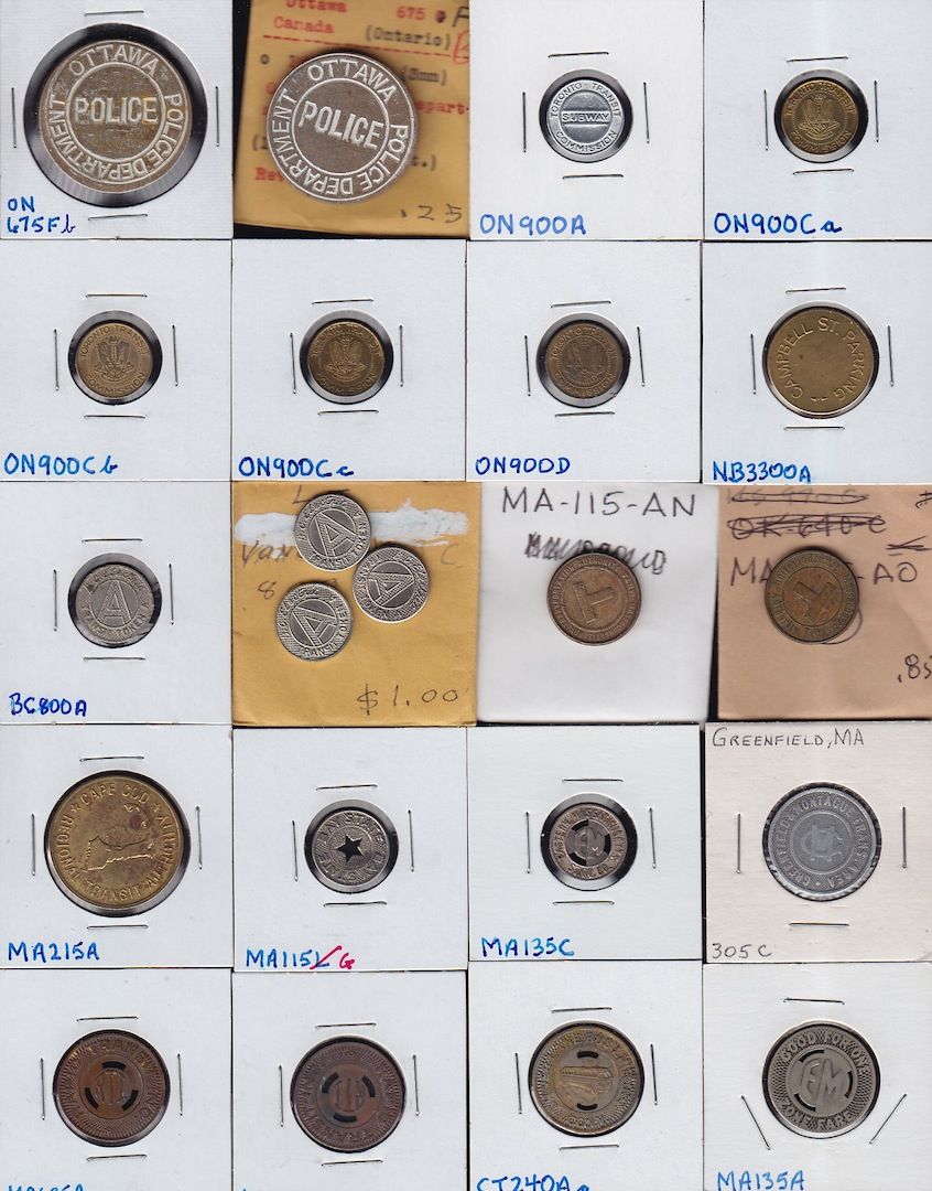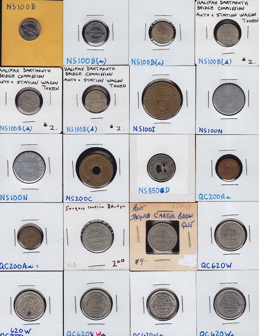 Lot of 123 Transportation Tokens. Includes: Nova Scotia 11, Quebec 26, Ontario 10, Alberta 1, British Columbia 2, United States 73. 123 Pcs.