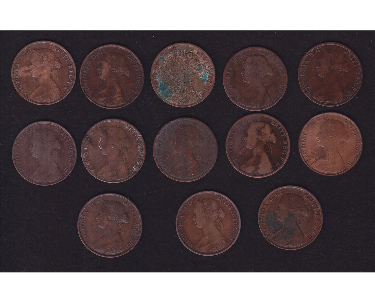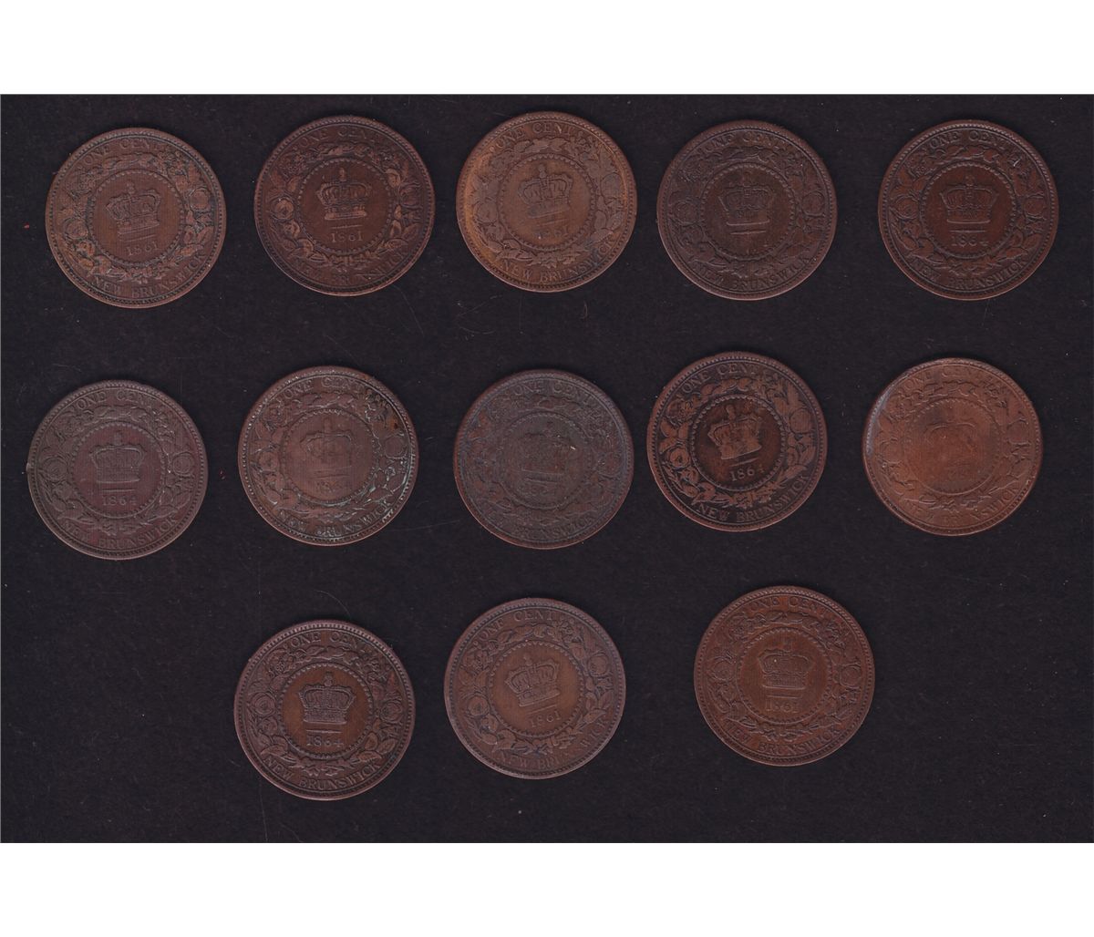 Lot of 13 New Brunswick Coins - Includes: Six 1861 One Cent; Seven 1864 One Cent; all coins vary from VG to Fine. 13 Pcs.