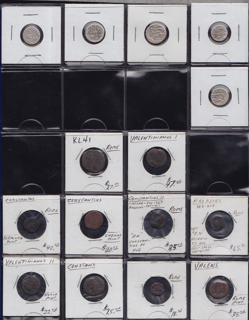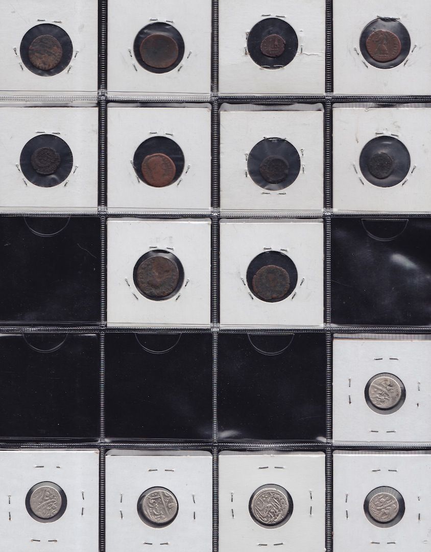 Lot of 15 Ancient Coins. Group of late Roman Bronze coins from the 4th century (10) and Indian Mughal silver coins (5). F+-VF. 15 Pcs.