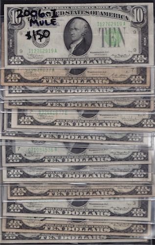 Lot of 16 USA $10 FRN's - Includes: 14x 1934 mix of plain, A, B, & C; 1928 B Series; 1934A Mule in VF+. 16 Pcs.