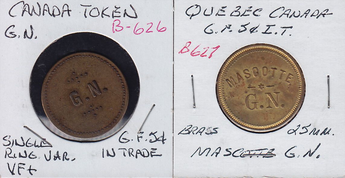 Lot of 2 Breton Tokens. Includes: BR 626, G.N., St. Henri, PQ, brass, VF; BR 627, Mascotte, St. Henri, PQ, brass, UNC. 2 Pcs.