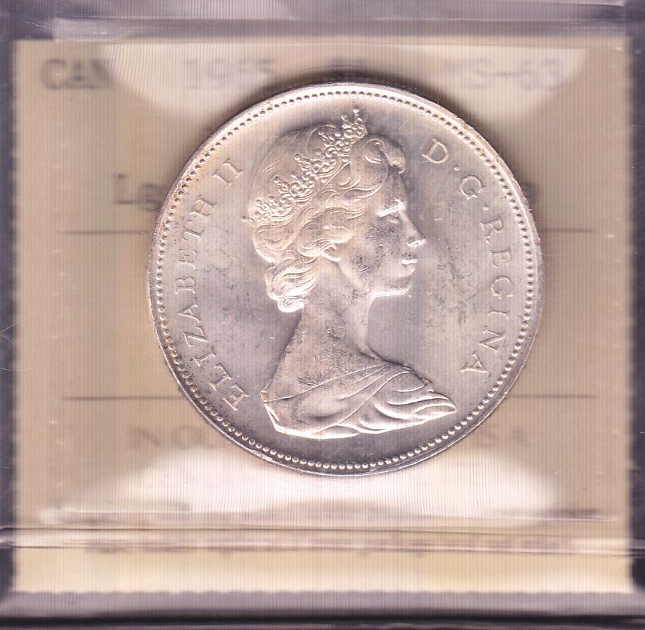 Lot of 2 Coins - Lot includes: 1965 Silver Dollar, Lge Bds Blt 5, Cameo. ICCS MS-63; 1886 One Cent, Obverse 2, ICCS VG-10. 2 Pcs.