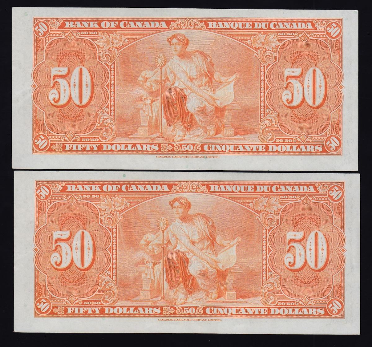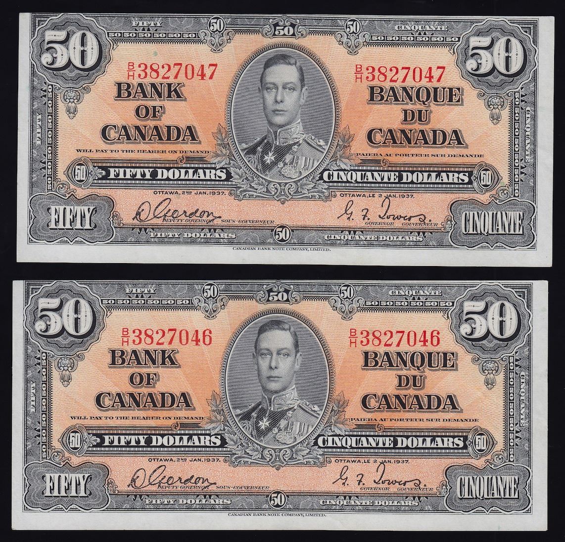 Lot of 2 Consecutive Bank of Canada $50, 1937