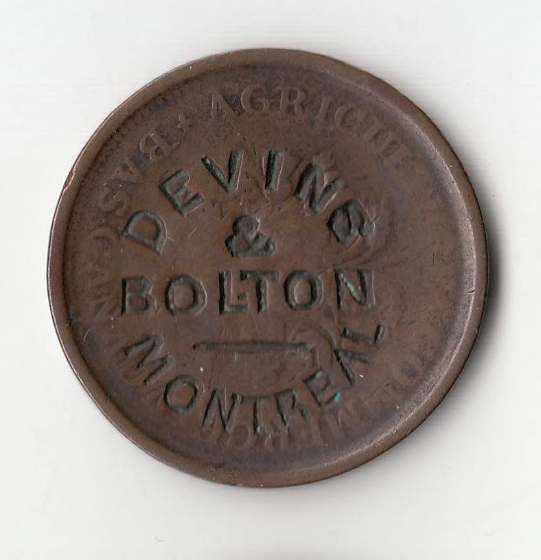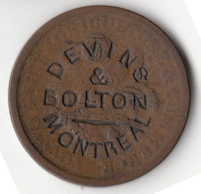 Lot of 2 Devins & Bolton Countermarked Canadian Tokens.