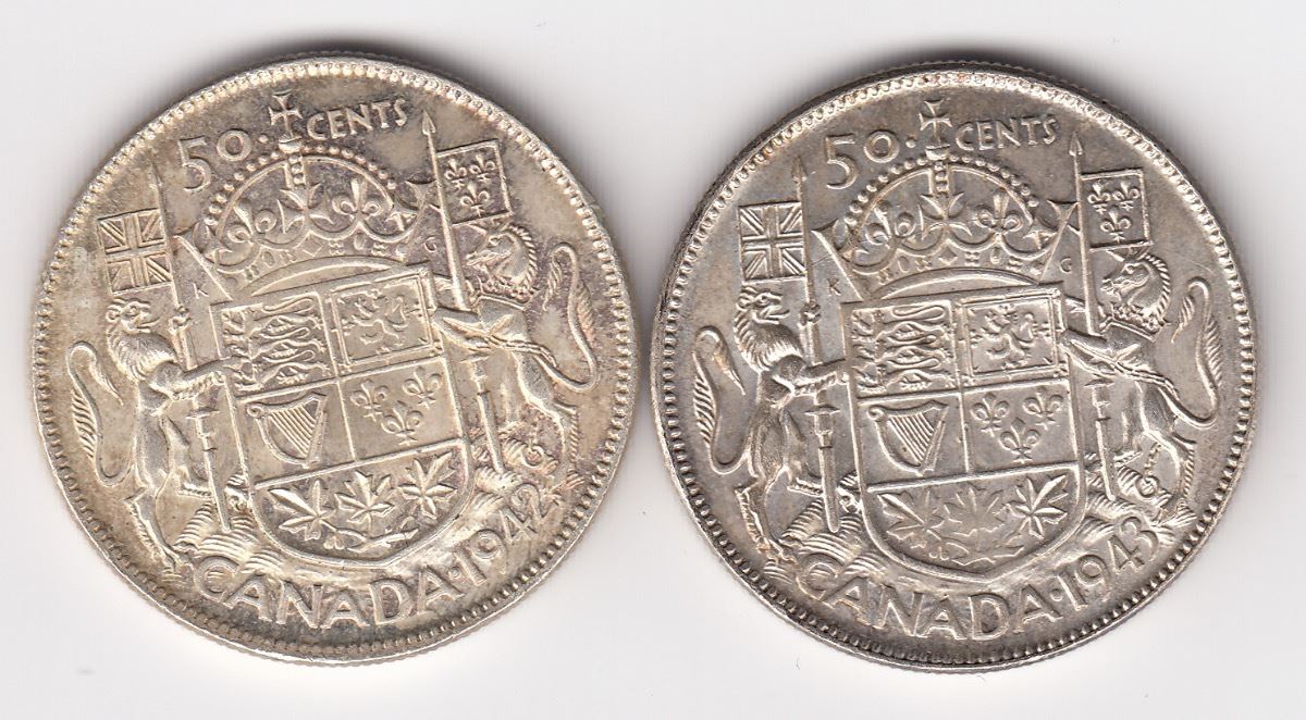 Lot of 2 Fifty Cents - Dates are: 1942 & 1943, both are AU. 2 Pcs.