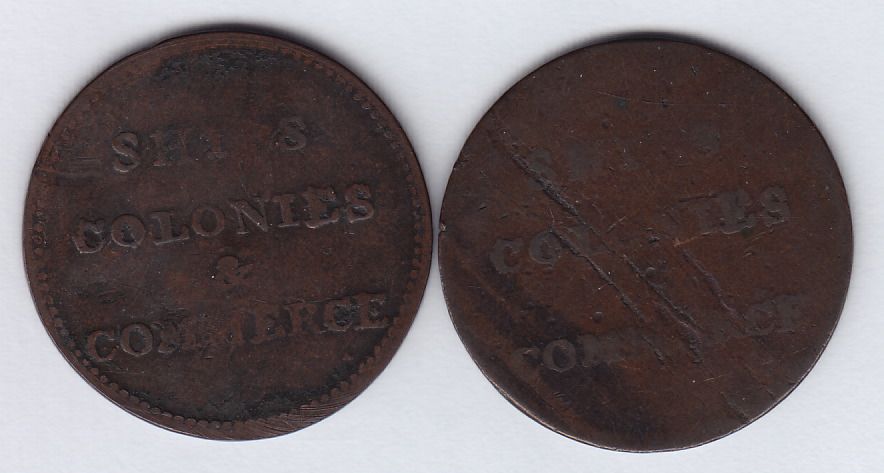 Lot of 2 Lower Canada Tokens. Includes: CH LC-58A1, BR 1002,VG; CH LC-58B, BR 1002, VG. 2 Pcs.