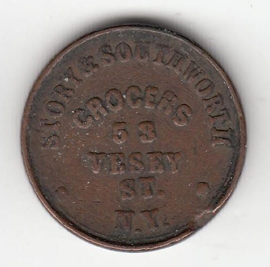 Lot of 2 NY, NY Civil War Tokens. Includes: 630BV-2a, Story & Southworth, R!, F. 630BV-6a, Story & Southworth, R!, EF. 2 Pcs.
