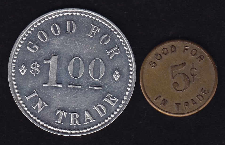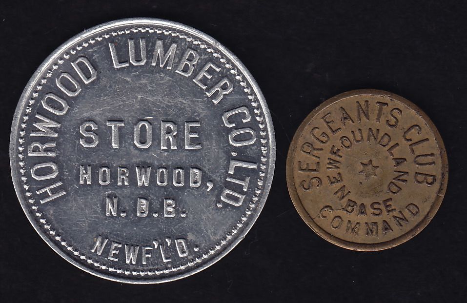 Lot of 2 Newfoundland Trade Tokens. Horwood Lumber Co. Ltd., Horwood, Notre Dame Bay, Newfoundland, $1.00, aluminum, UNC, Sergeants Club, Newfoundland Base Command, brass, 5 cents, VF. 2 Pcs.