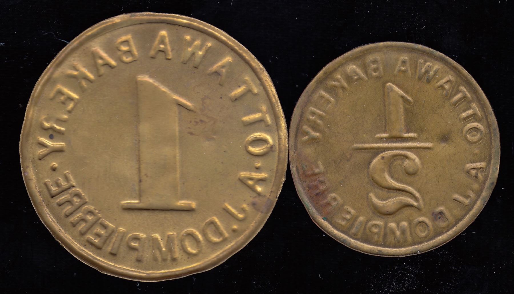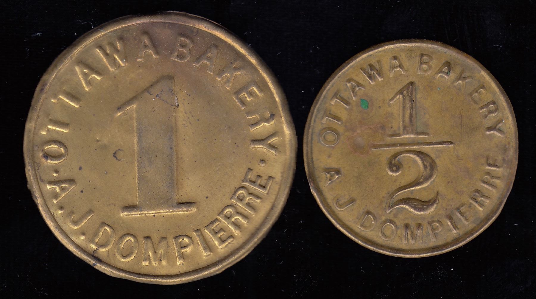 Br. 737, A.J. Dompierre, 1, with stops, sheet brass, Unc; Br. 738, A.J. Dompierre, ½, sheet brass, AU. 2 Pcs.