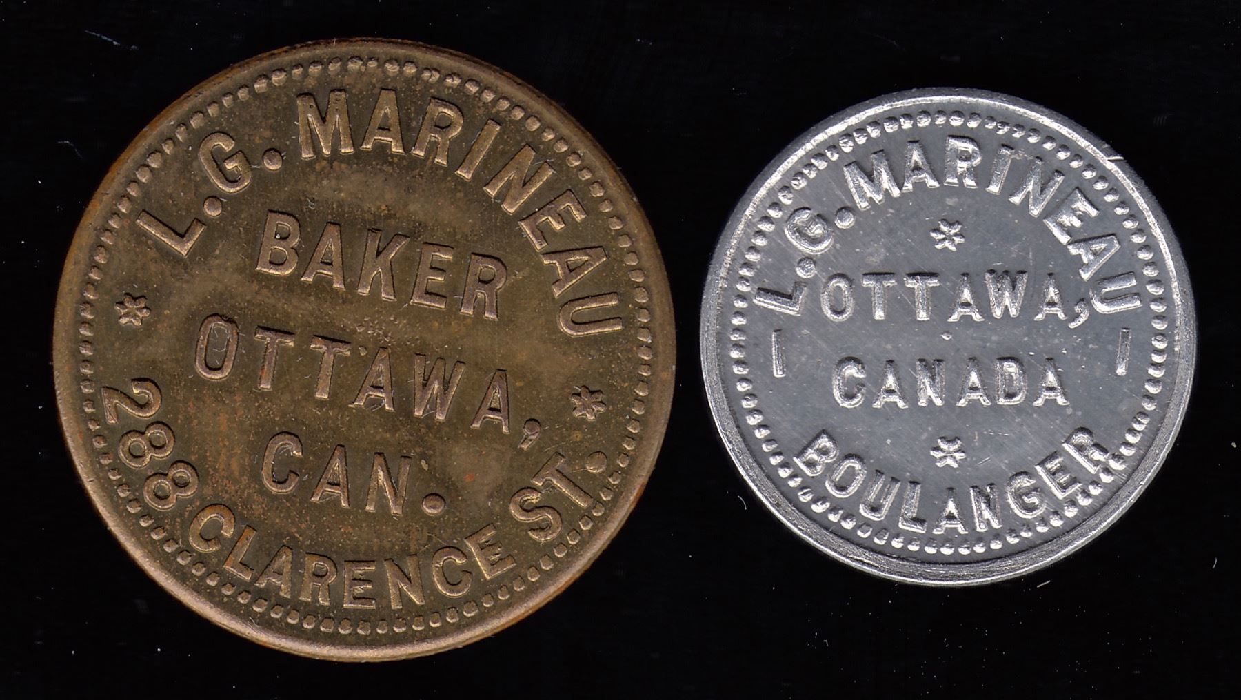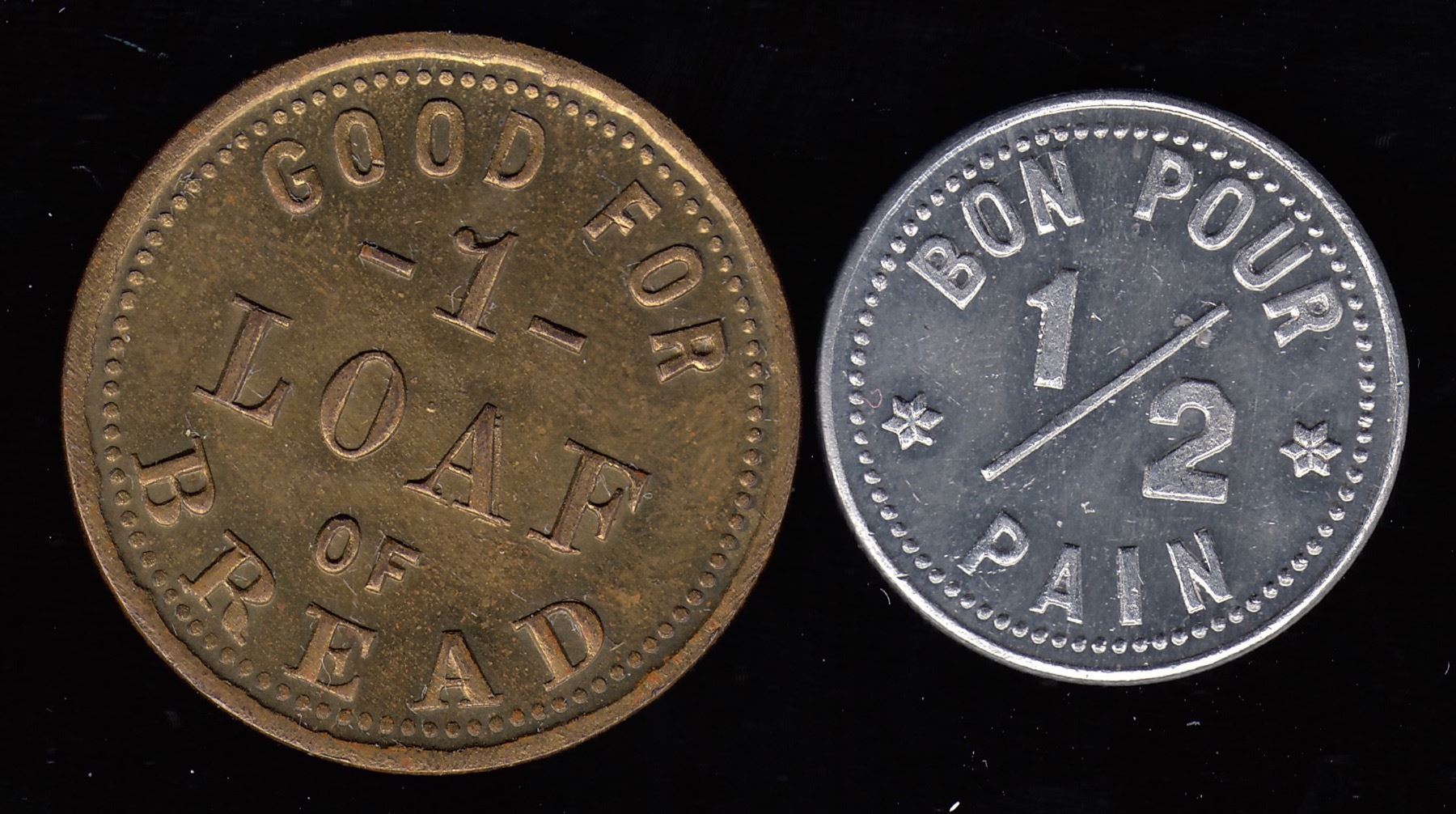 Br. 742, L.G. Marineau, ½ pain, aluminum, BU; Br. 743, L.G. Marineau, 1 loaf, brass, BU. 2 Pcs.