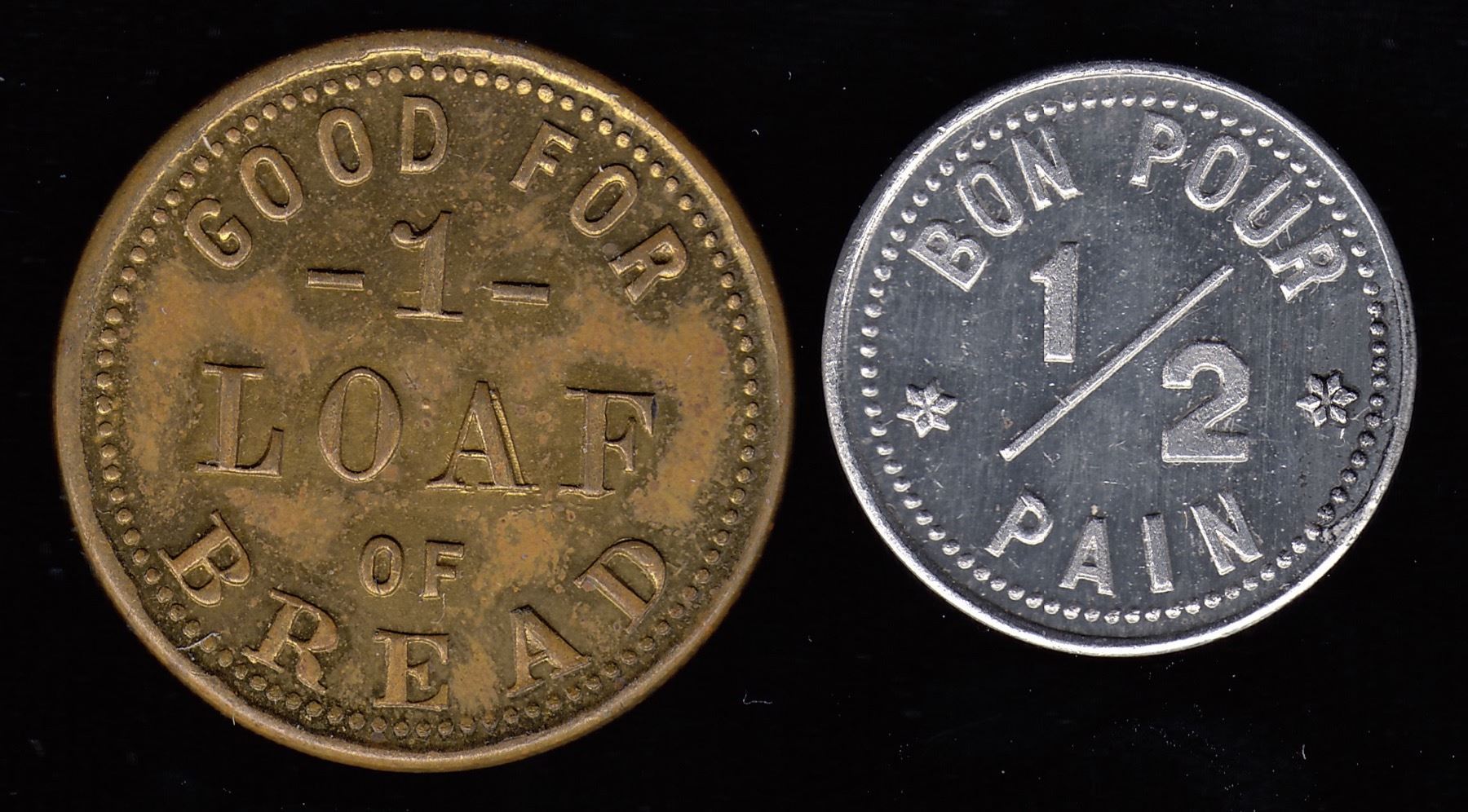 Br. 742, L.G. Marineau, ½ pain, aluminum, BU; Br. 743, L.G. Marineau, 1 loaf, brass, Unc. lustre. 2 Pcs.
