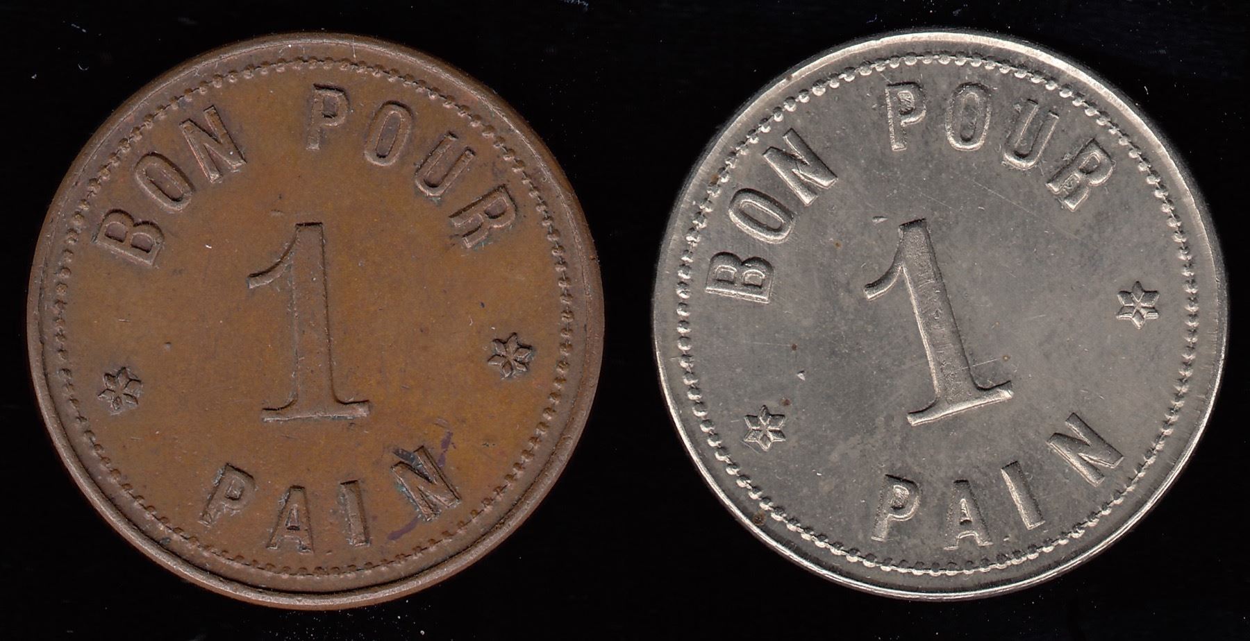 Br. 744, E. Renaud, 1 pain, copper, Unc; Br. 744, E. Renaud, 1 pain, German silver, BU. 2 Pcs.