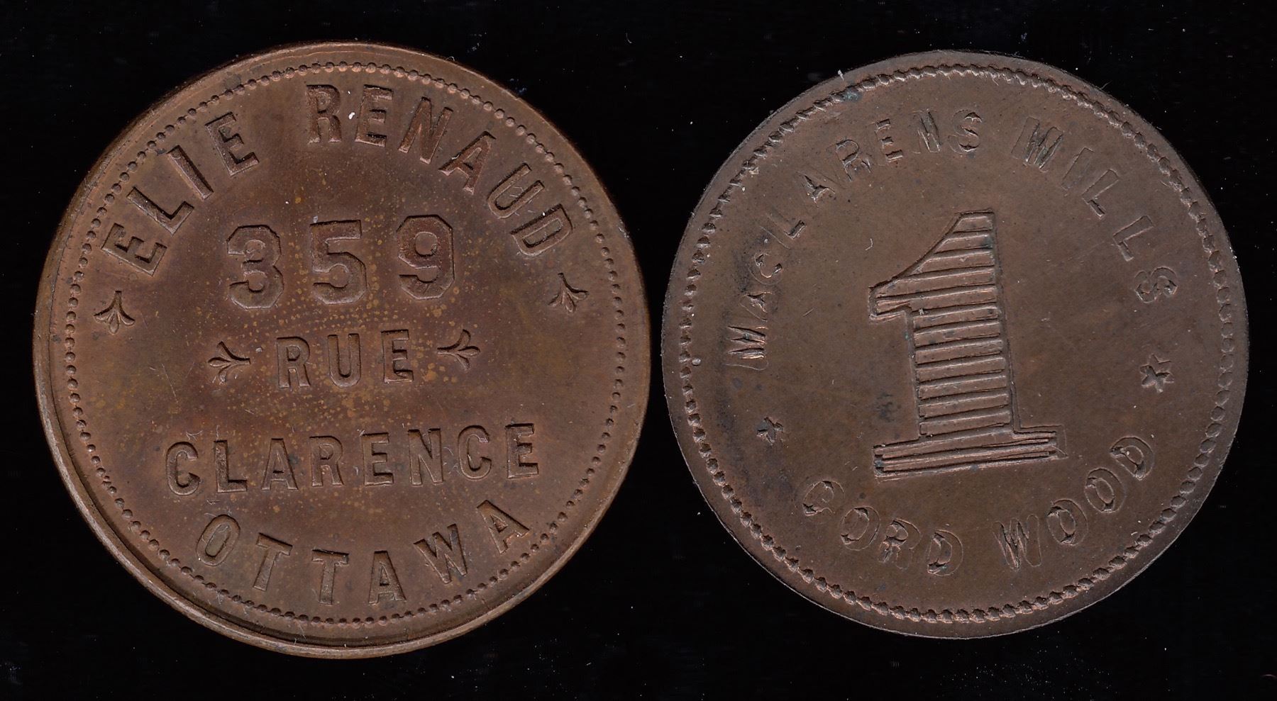 Br. 768, MacLarens Mills, 1, copper, Unc; Br. 769, Elie Renaud, 1, copper, Unc. 2 Pcs.