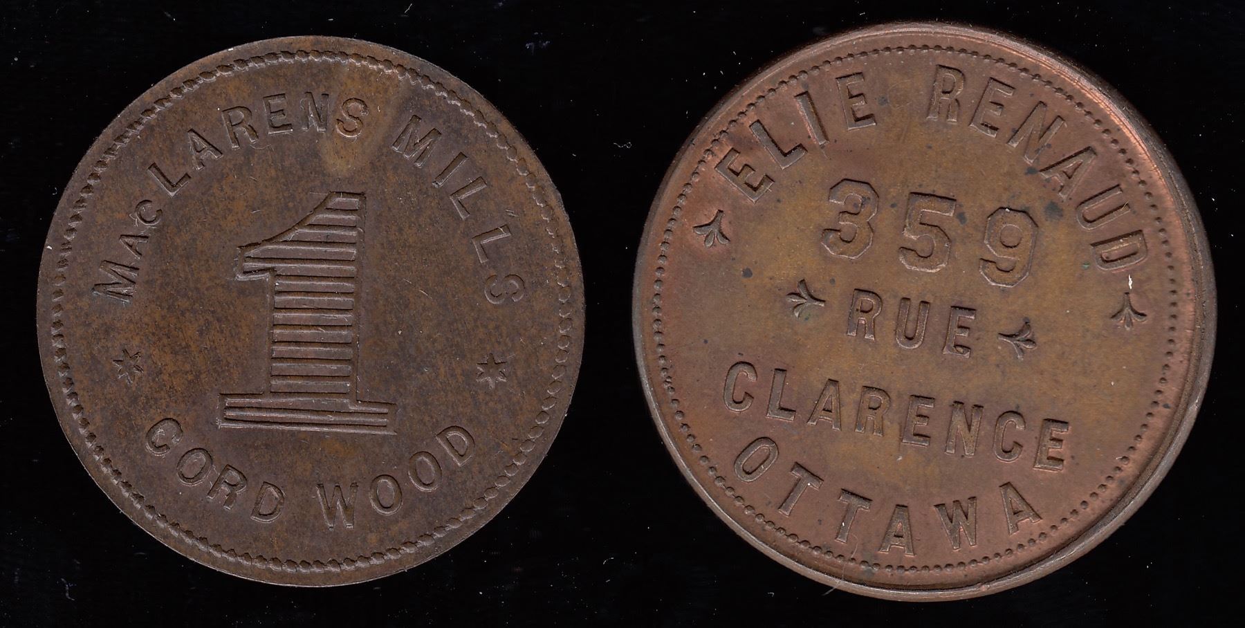Br. 768, MacLarens Mills, 1, copper, Unc; Br. 769, Elie Renaud, 1, copper, Unc. 2 Pcs.