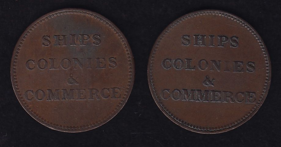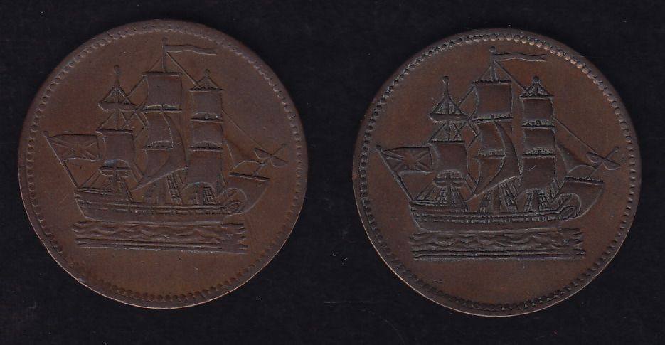 Lot of 2 PEI Colonial Tokens. Includes: CH PE-10-37, BR 997 Fine, CH PE-10-36, BR 997 VF. 2 Pcs.