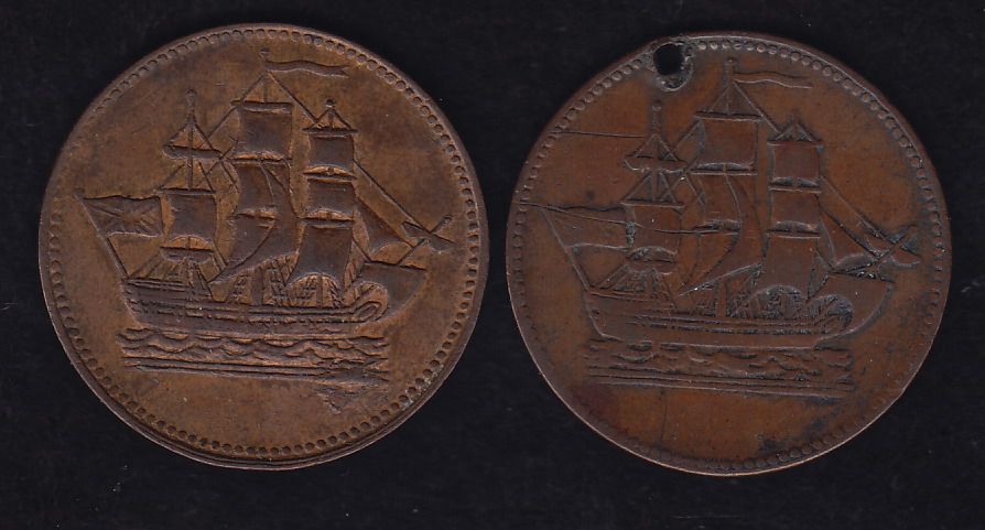 Lot of 2 PEI Tokens. CH PE-10-12, BR 997, Lees 12, R6, VF; CH PE-10-17, BR 997, Lees 17, R9, Fine. 2 Pcs.