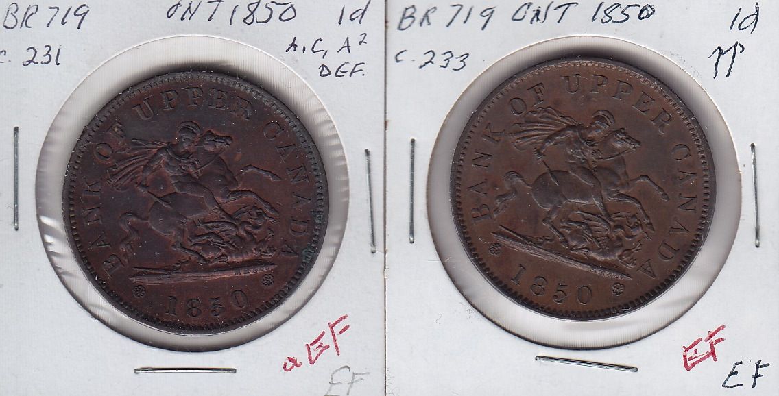 Lot of 2 Province of Canada Tokens - Lot includes: Courteau 231, about EF; Courteau 233, with dot between cornucopia, EF. 2 Pcs.