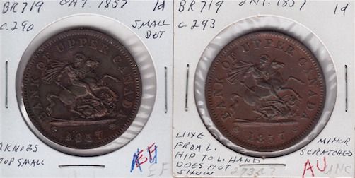 Lot of 2 Province of Canada Tokens - Lot includes: Courteau 290, AU; Courteau 293, AU. 2 Pcs.