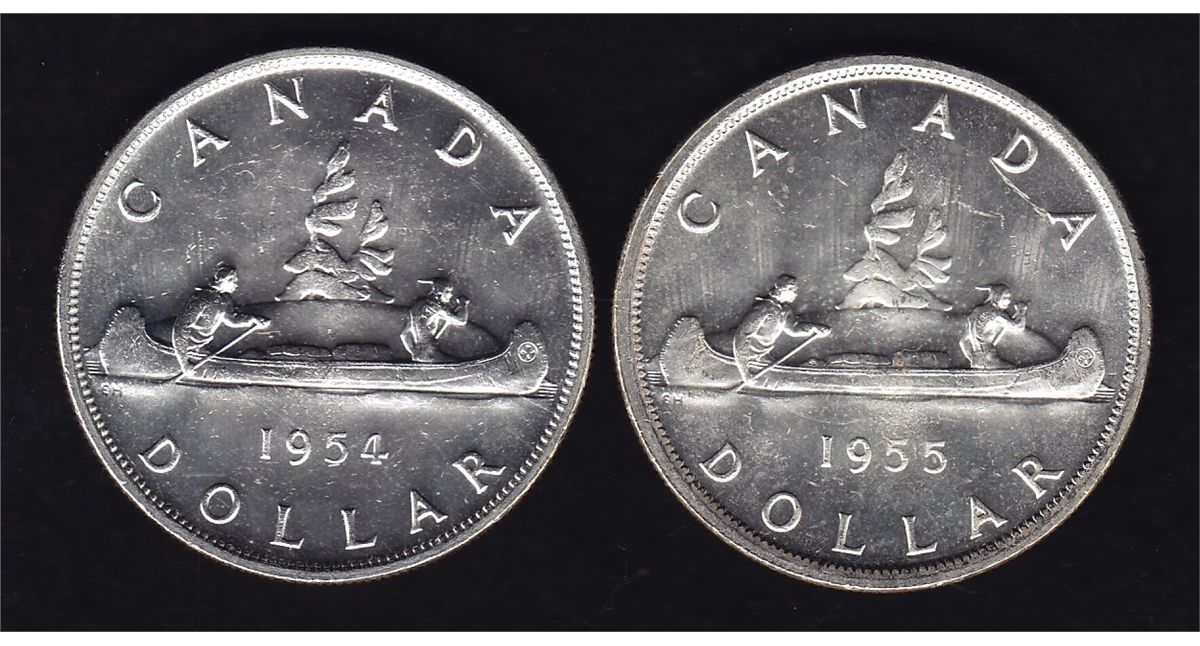 Lot of 2 Silver Dollars - Dates include: 1954 & 1955, both Unc. 2 Pcs.