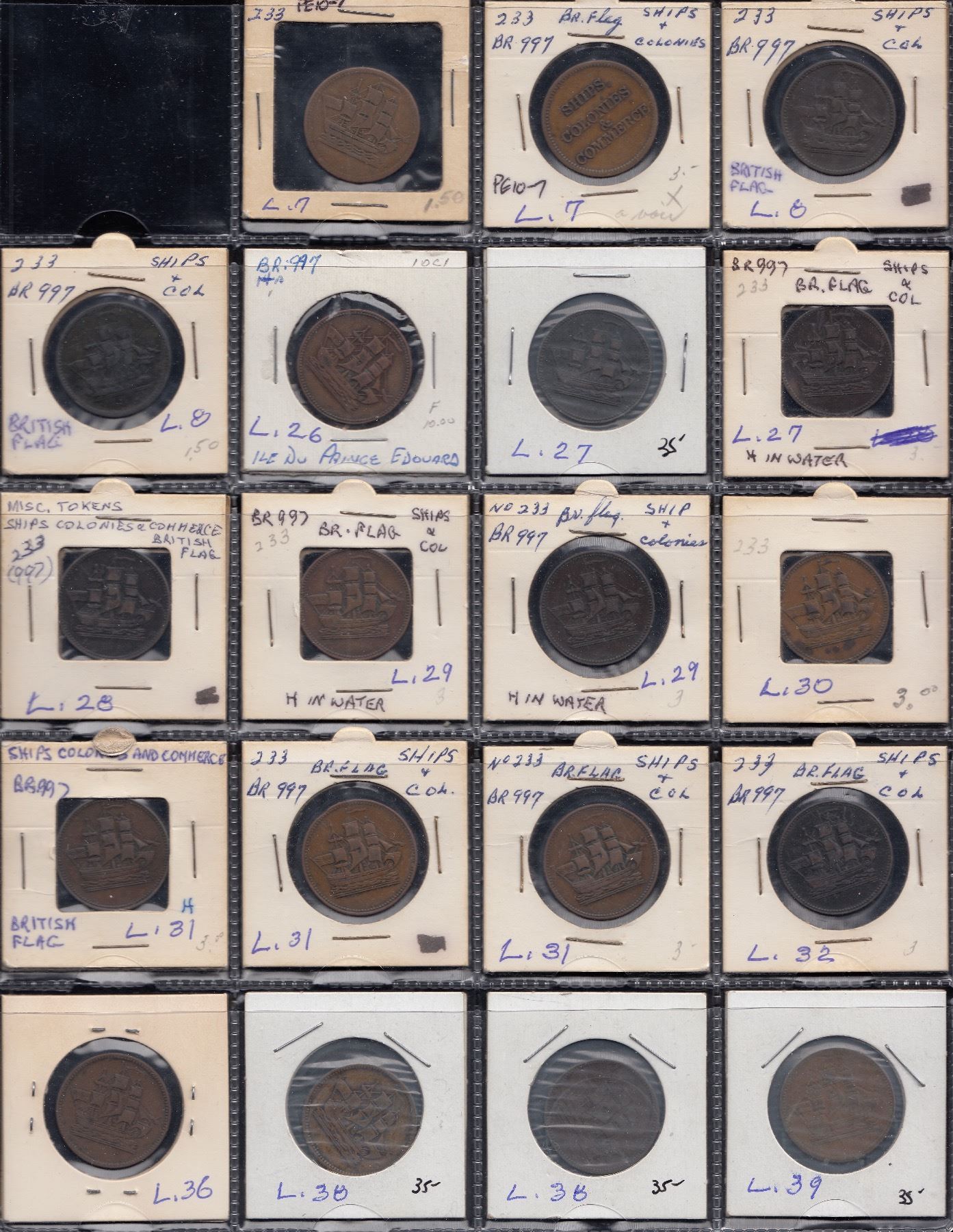 Lees 7, PE-10-7 (2); Lees 8, PE-10-8 (2); Lees 26, PE-10-26 (1); Lees 27, PE-10- 27 (2); Lees 28, PE-10-28 (1); Lees 29, PE-10-29 (2); Lees 30, PE-10-30 (2); Lees 31, PE-10-31 (3); Lees 32, PE-10-32 (1); Lees 36, PE-10-36 (1); Lees 38, PE-10-38 (2); Lees 39, PE-10-39 (1); Lees 40, PE-10-40 (1). Fine – VF, one holed. 21 Pcs.